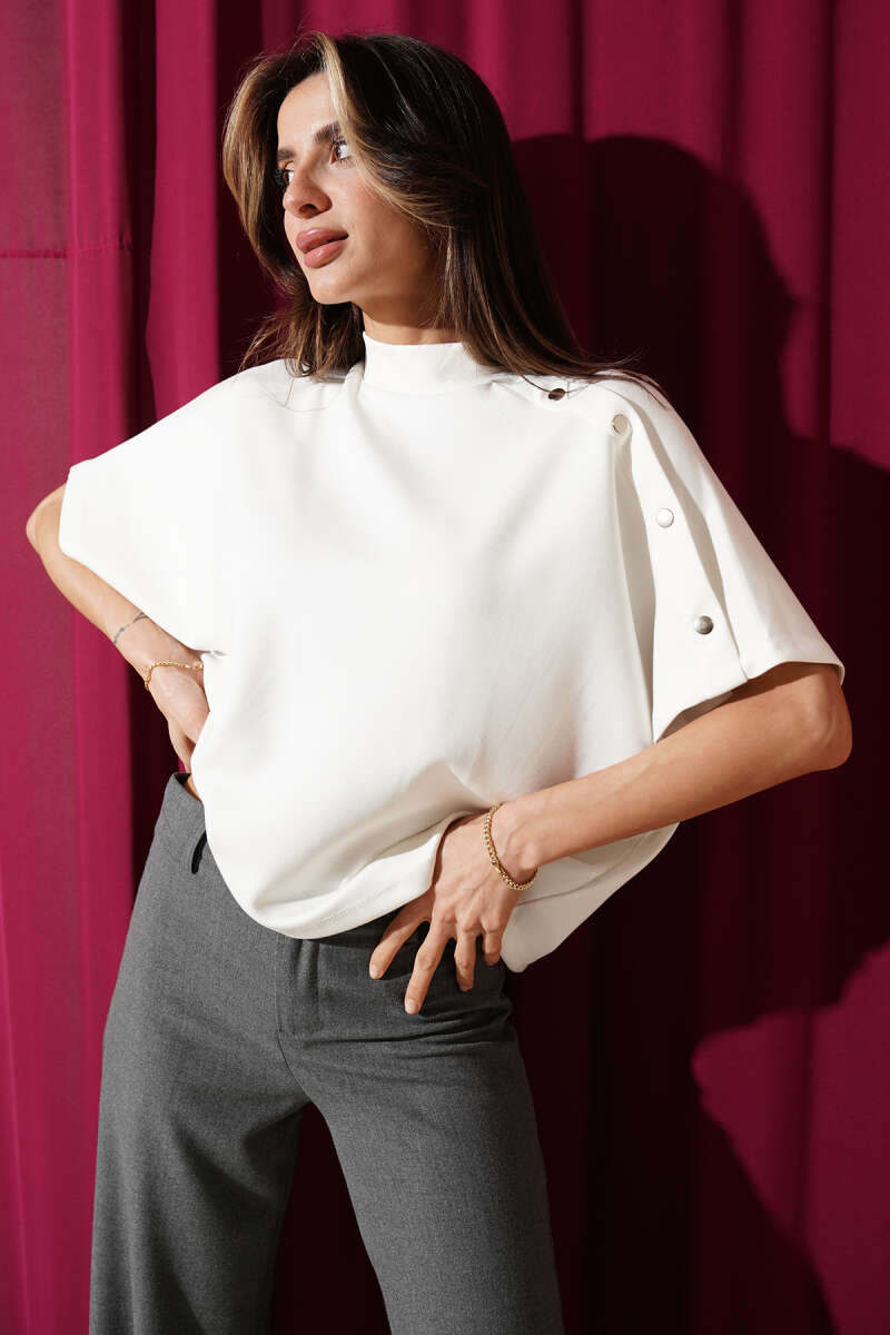 Yaka Tokalı Sandy Bluz Beyaz