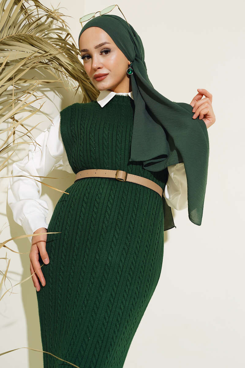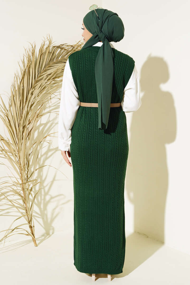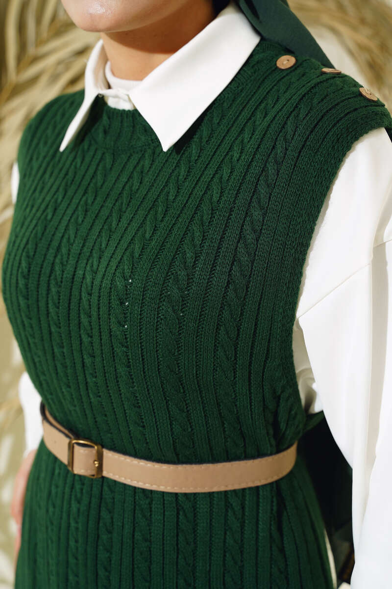 Düğmeli Tensel İnce Kemerli Elbise Haki