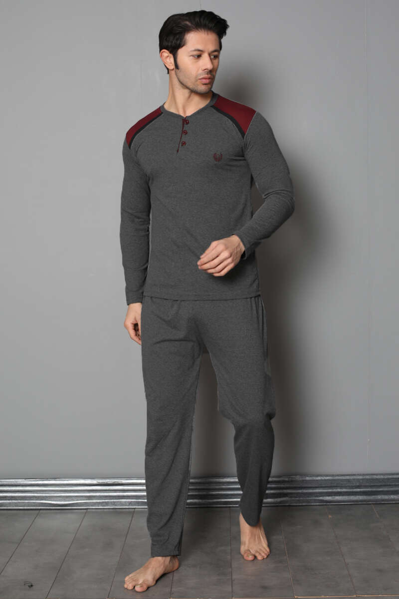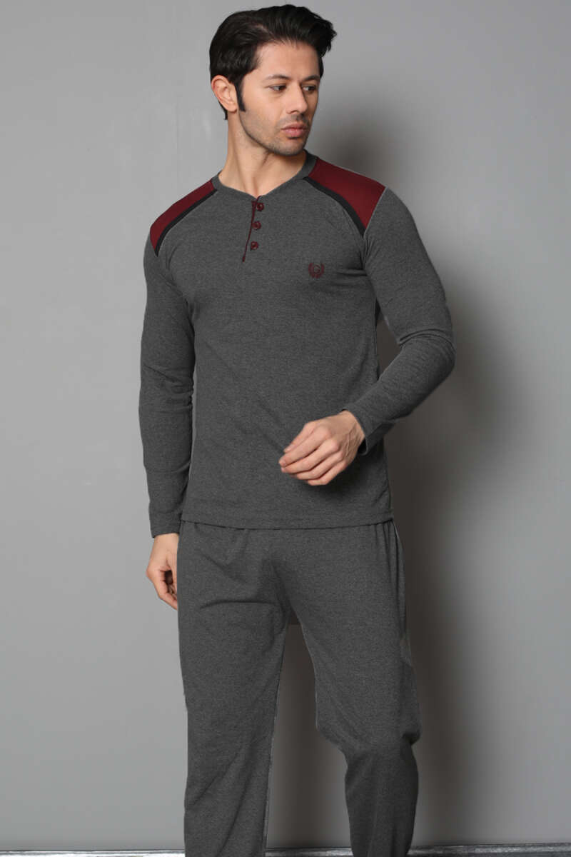 Omuz Düğmeli Uzun Kol Erkek Pijama Takım Antrasit