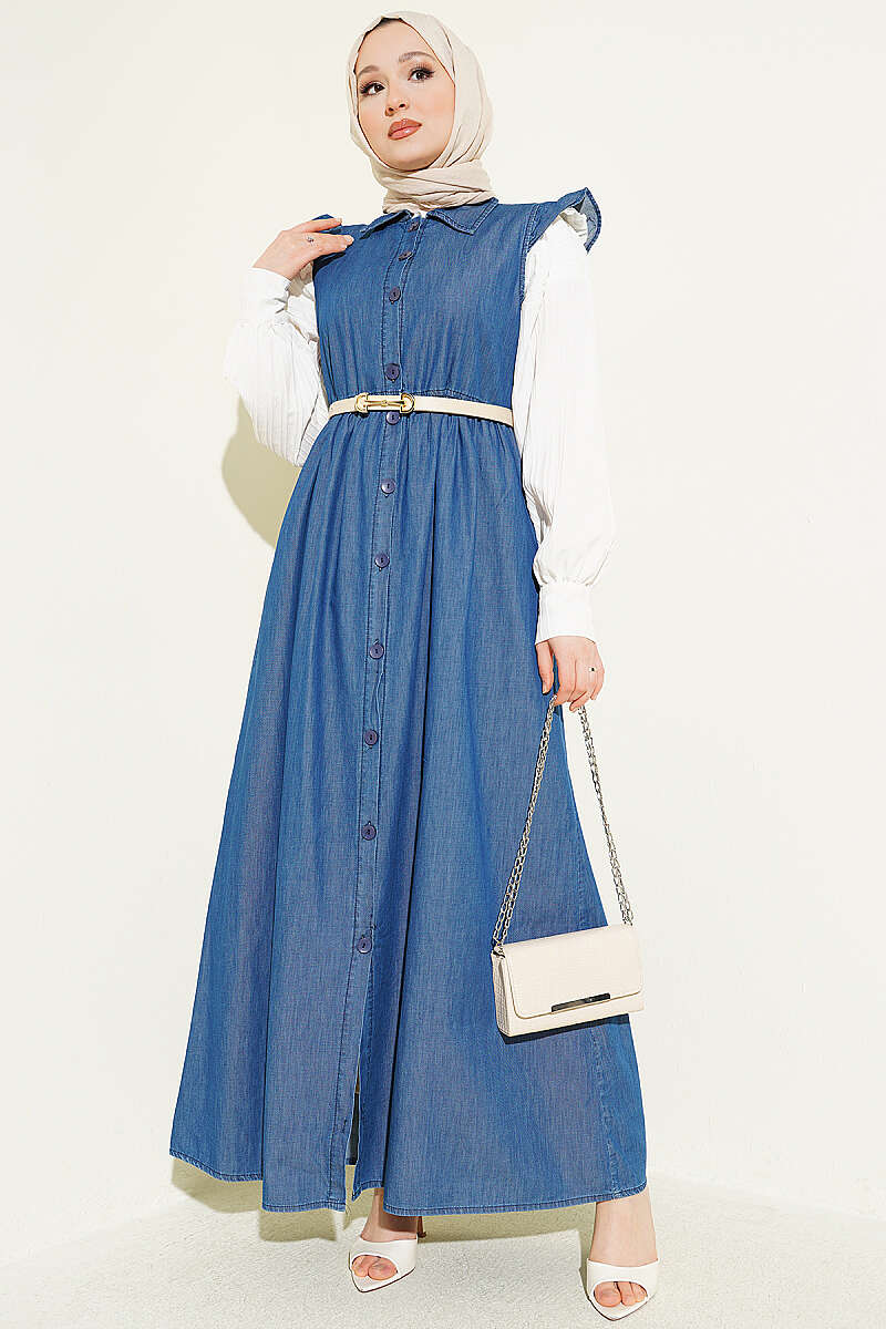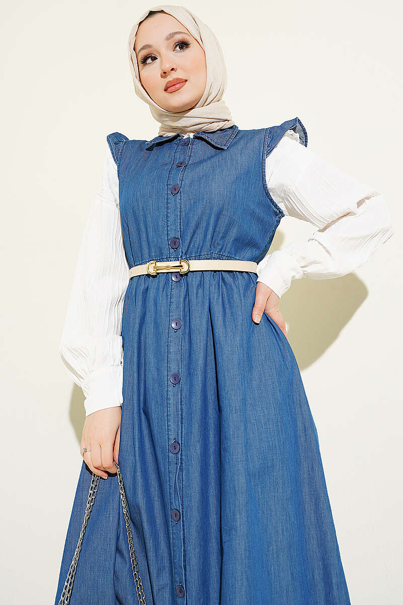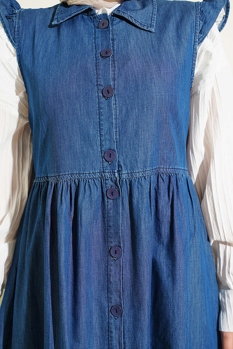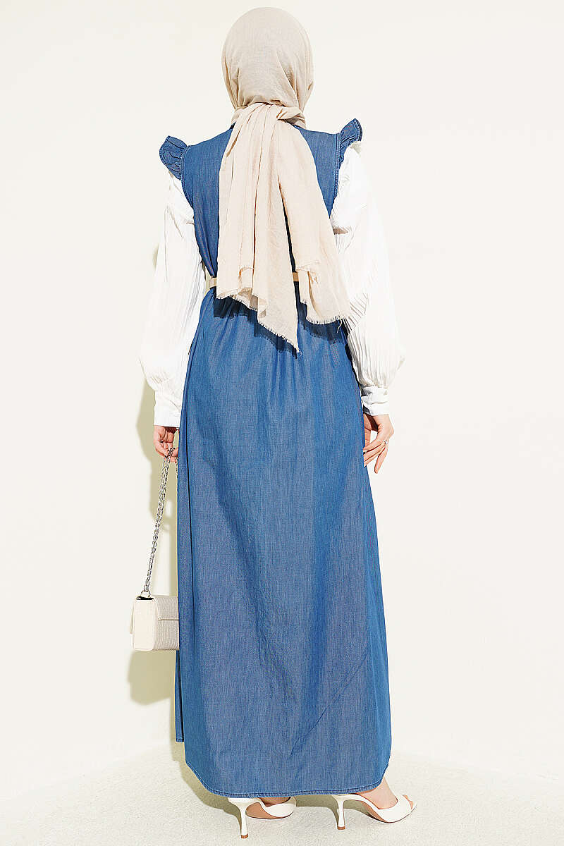 Omuz Fırfır Detaylı Kot Mavisi Elbise