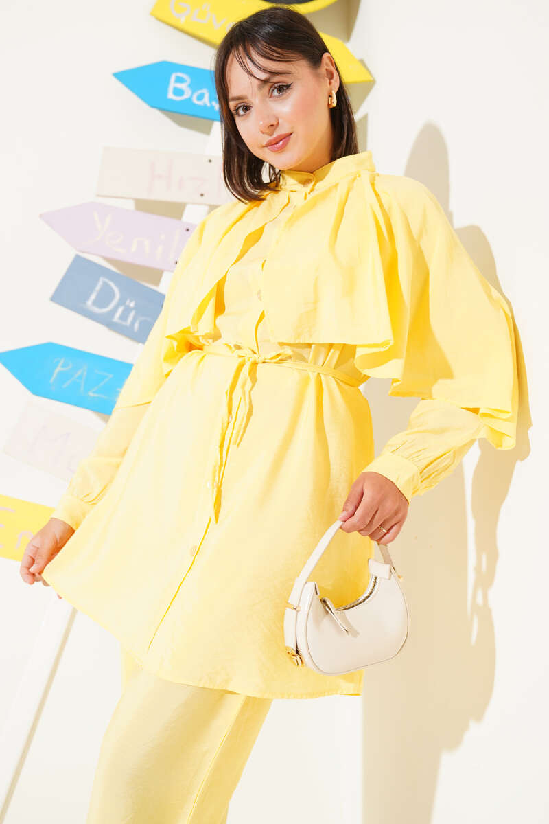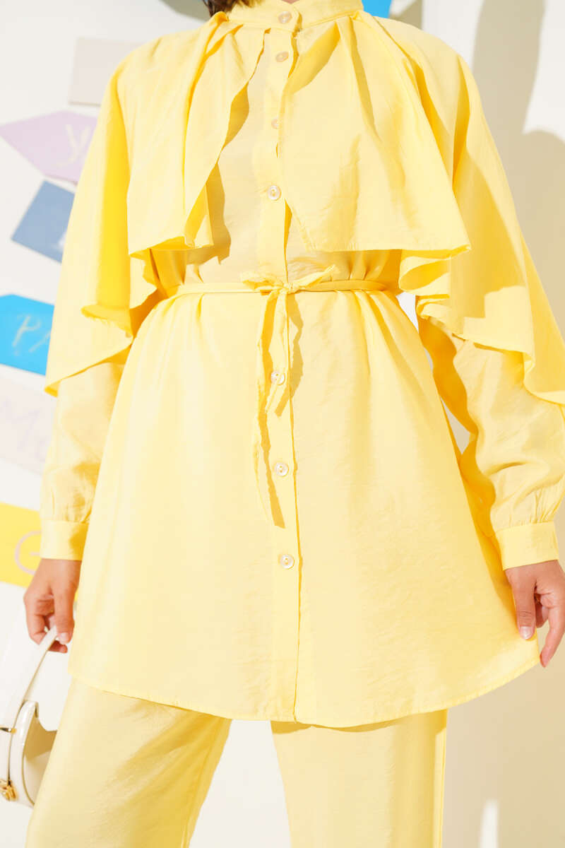 Omuz Fırfır Pelerinli İkili Takım Sarı