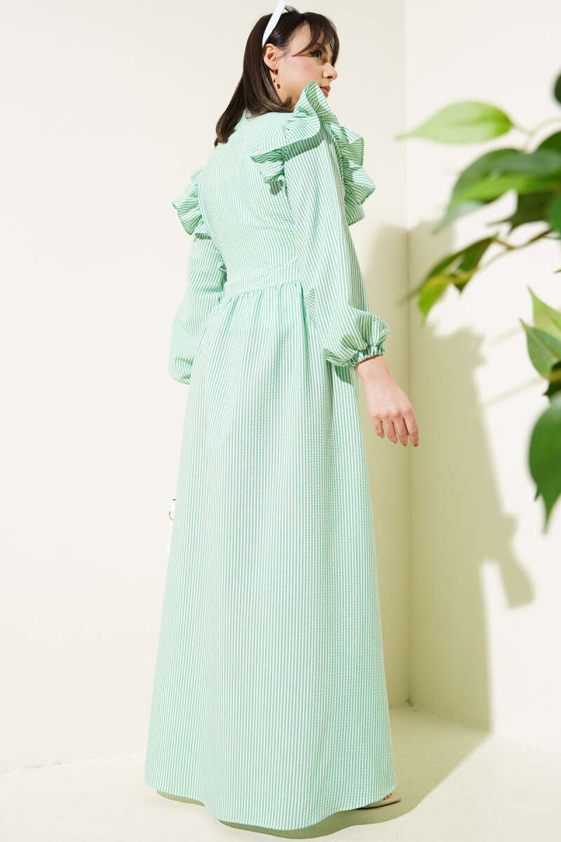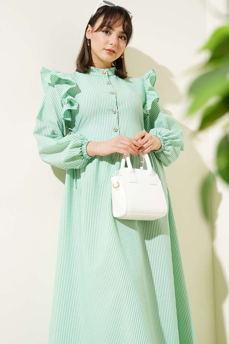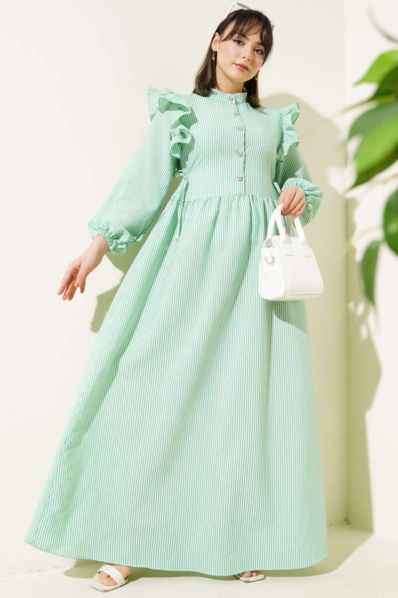 Şerit Ajur Desen Triko Elbise Zümrüt Yeşili