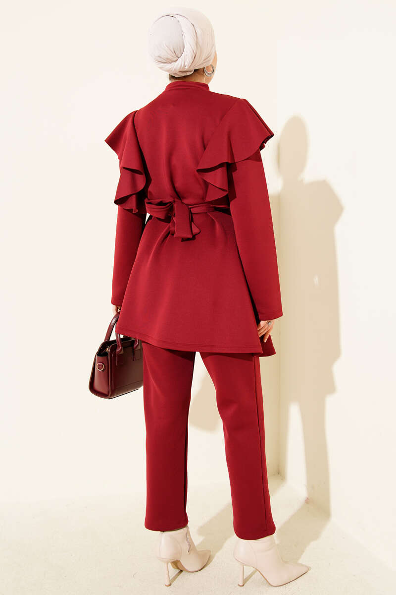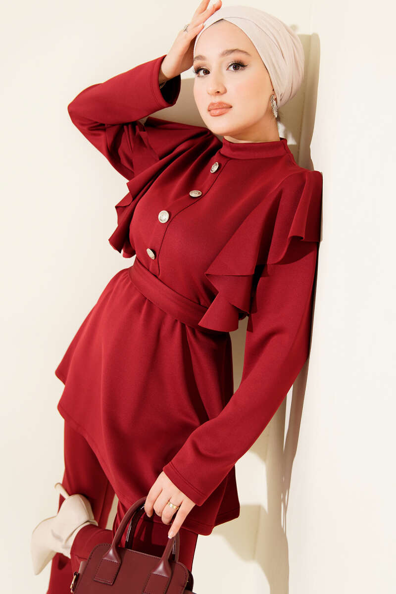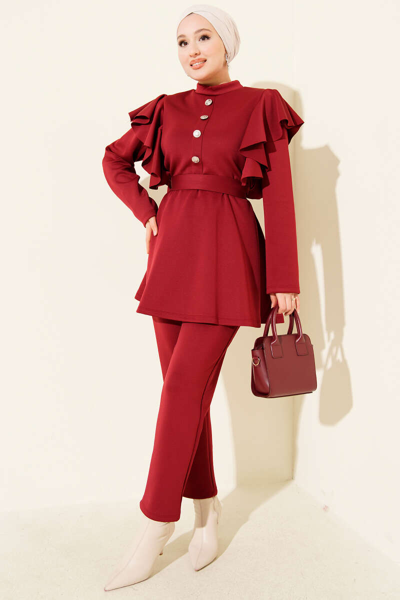 Brit Düğmeli İp Kuşaklı Tunik İkili Takım Lacivert