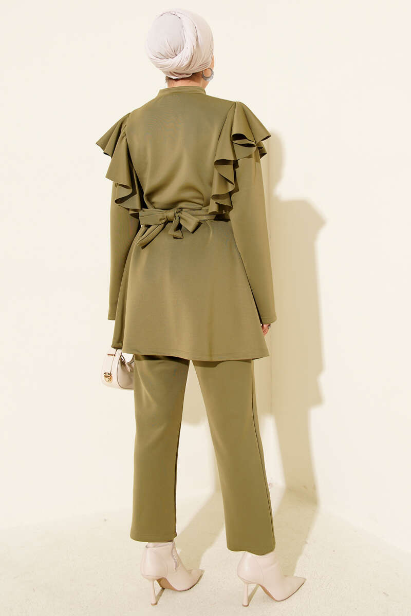 Fermuarlı Etekli Scuba İkili Takım Kahve