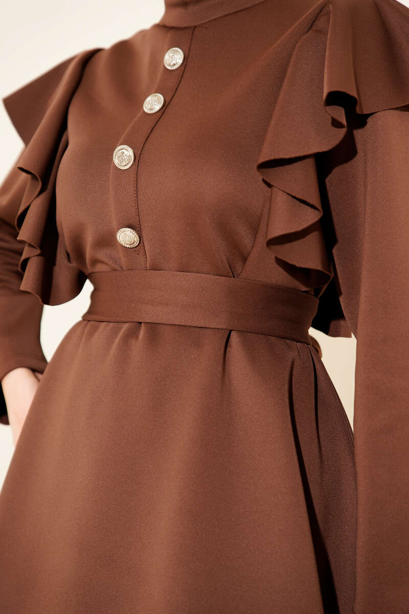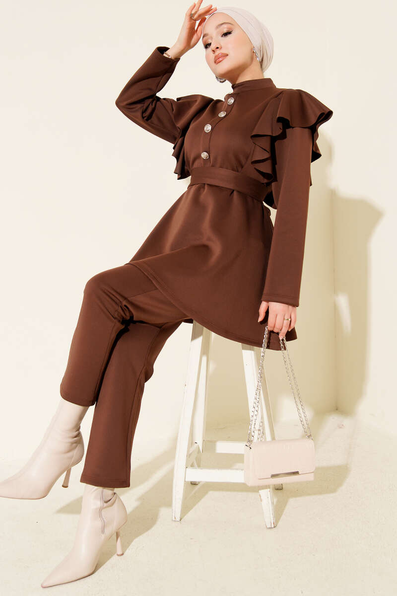 Düğme Detay Fırfırlı Büyük Beden Tunik Petrol