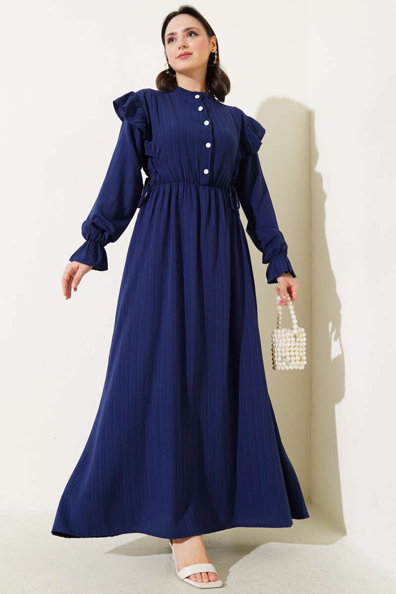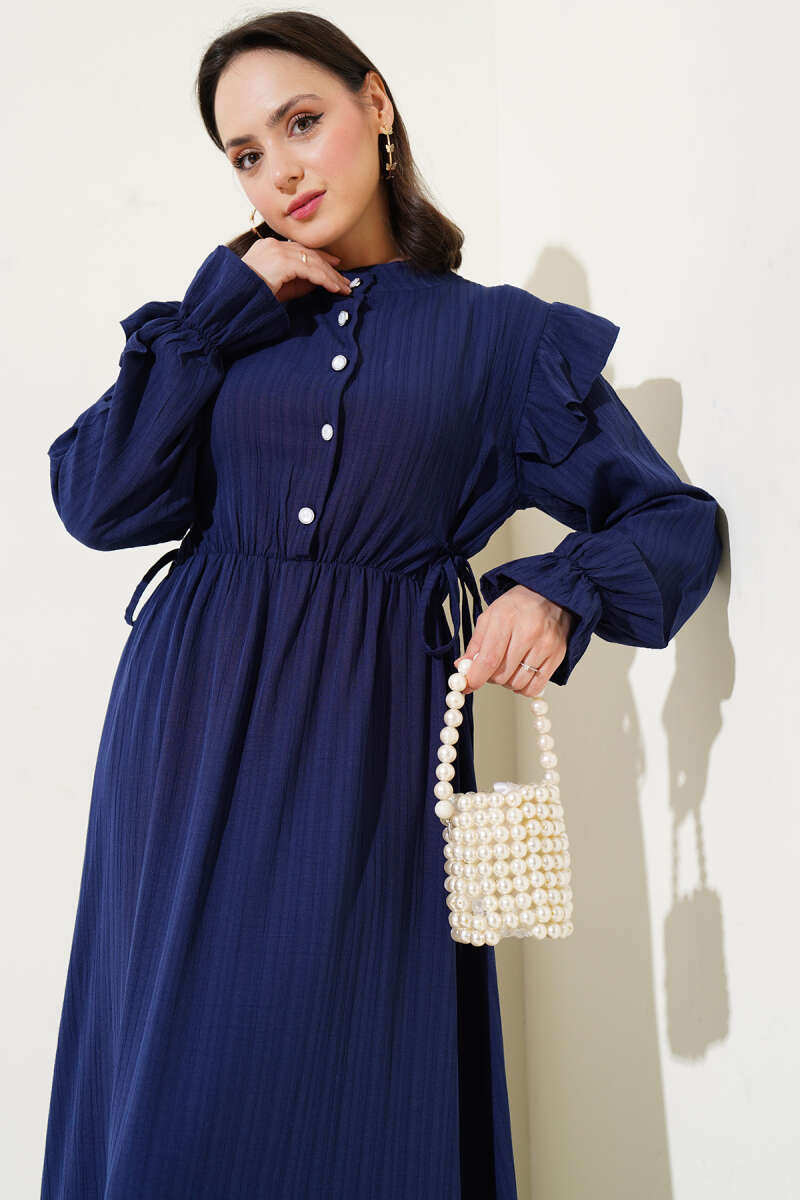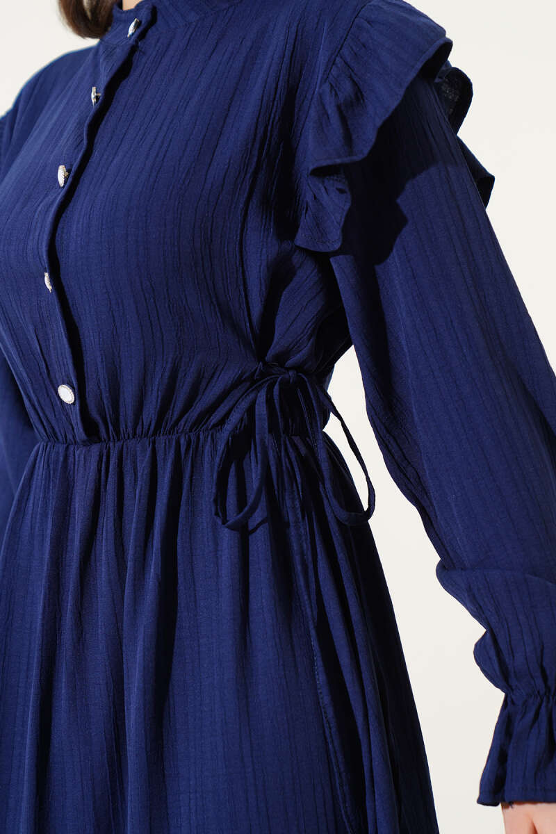 Balon Kol Kemerli Basic Elbise Lacivert