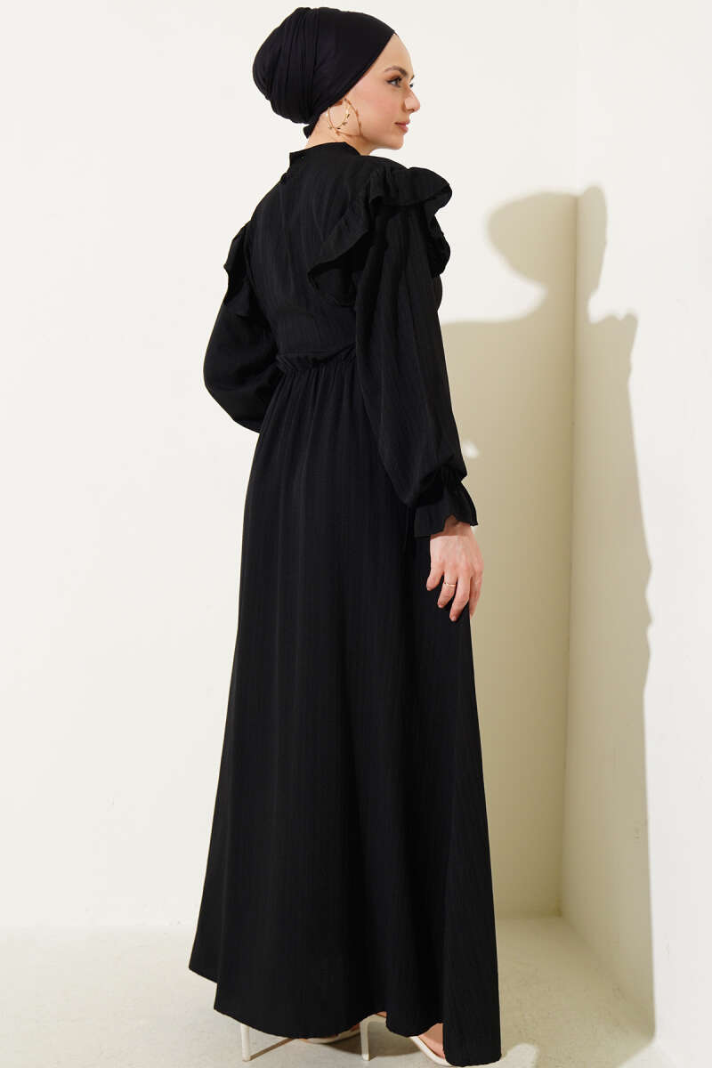 Gül Detaylı Pelerinli Abiye Elbise Siyah