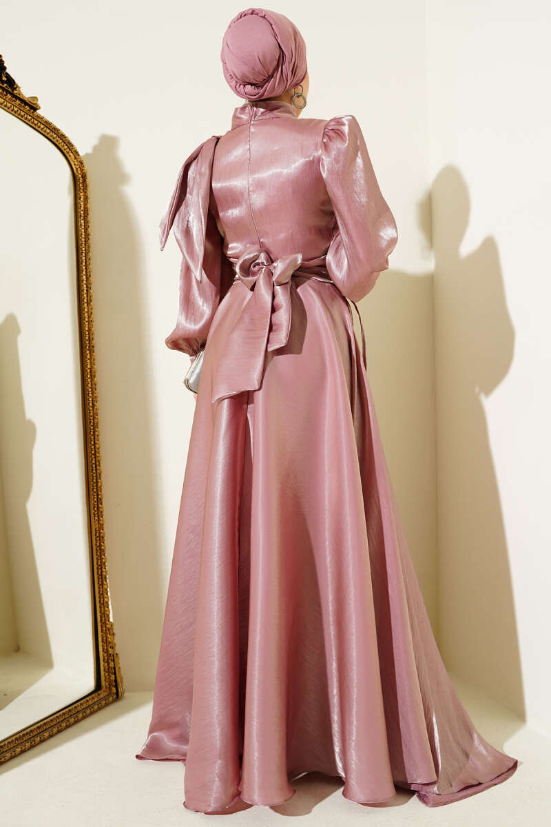 Bilek Bağlamalı Kuşaklı Abiye Elbise Haki