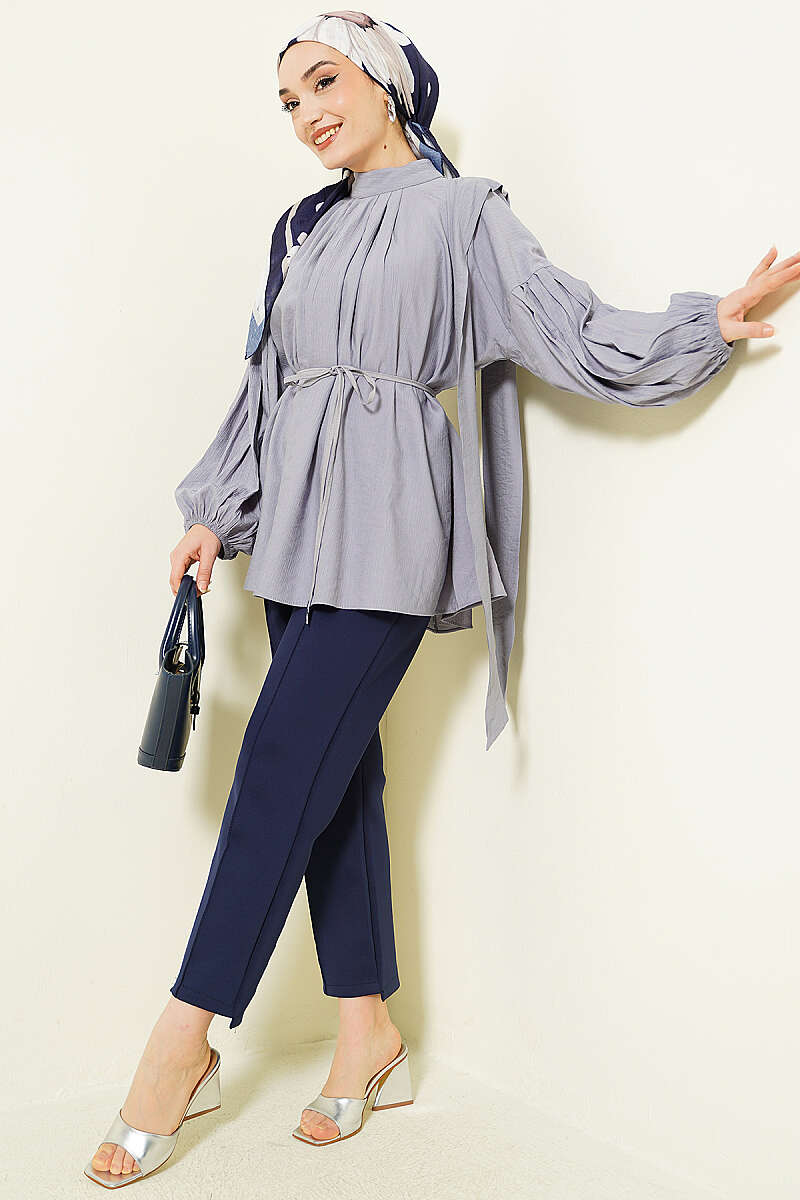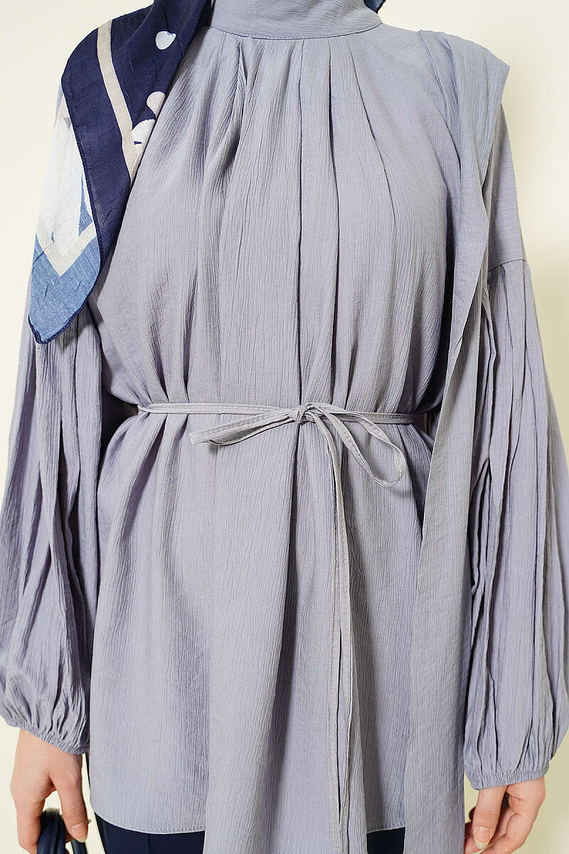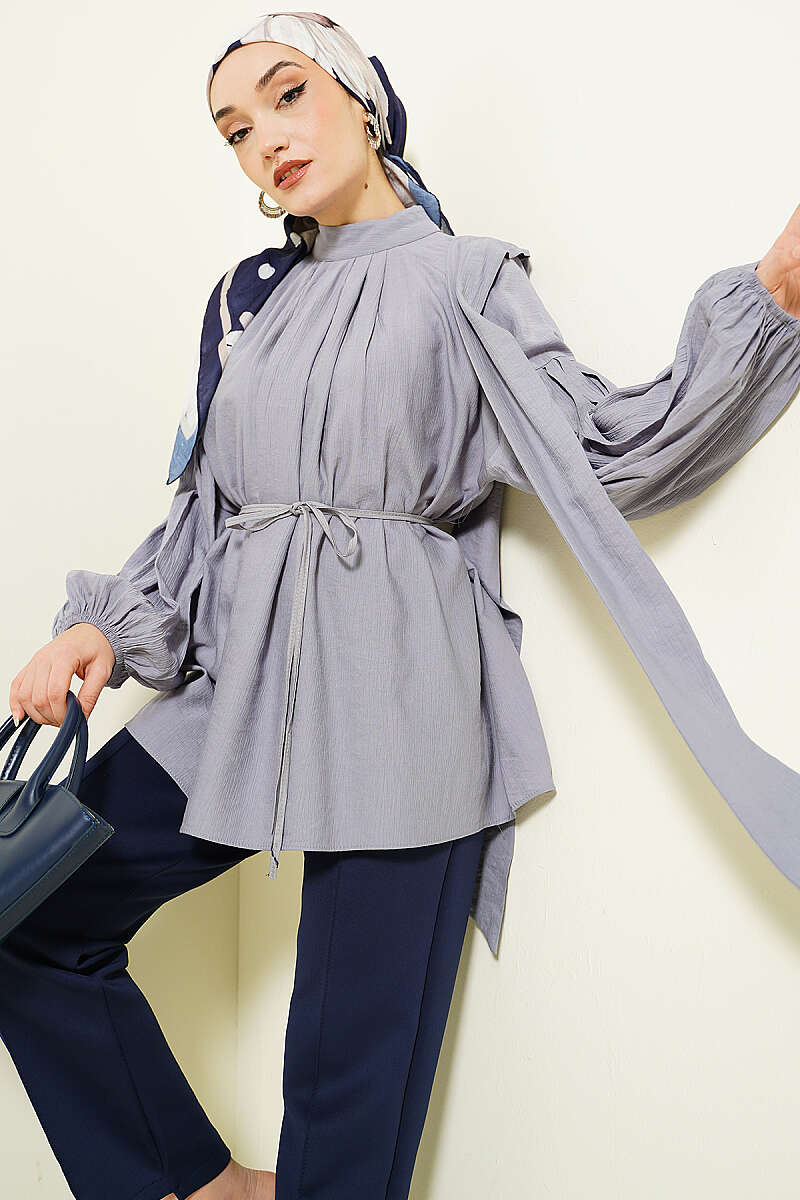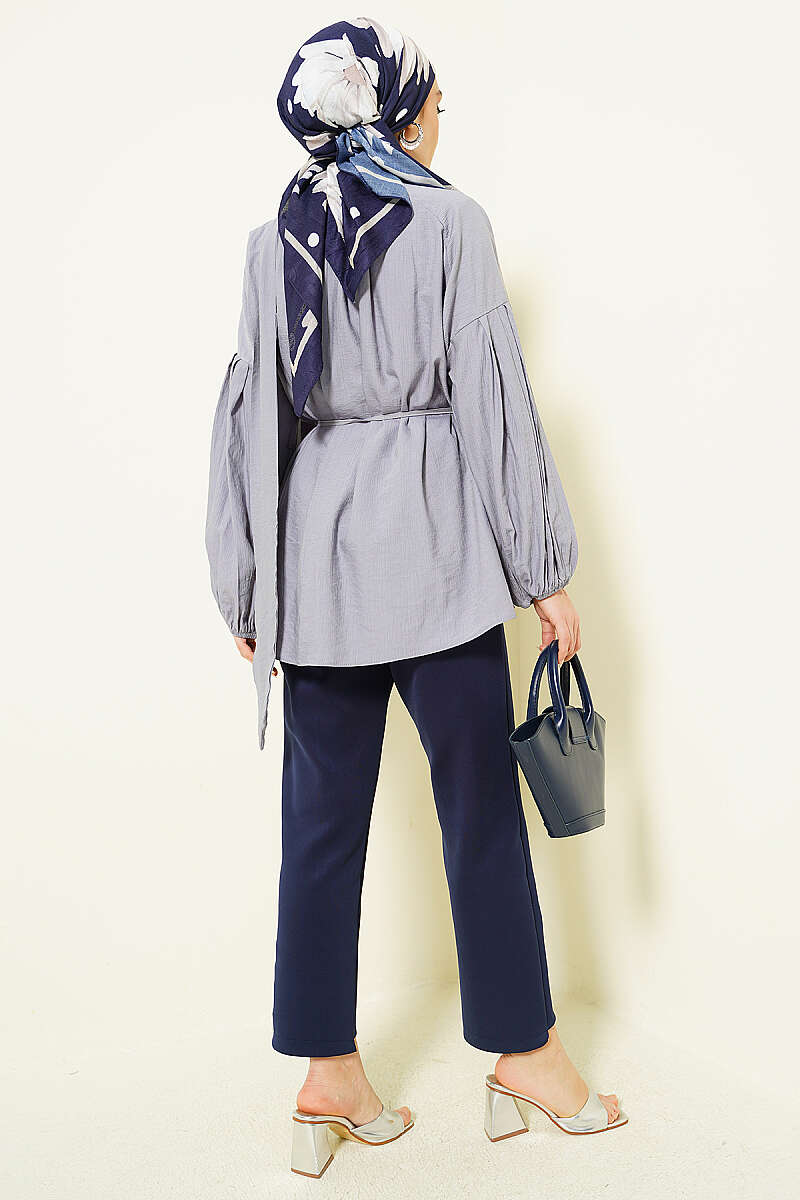 Kat Kat Detaylı Büzgülü Gömlek Mavi