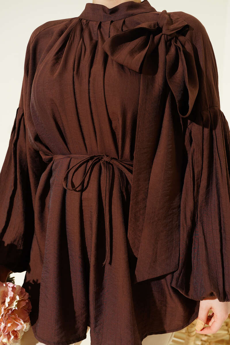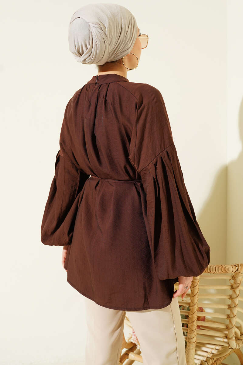 Nervürlü Yarım Düğmeli Tunik Acı Kahve