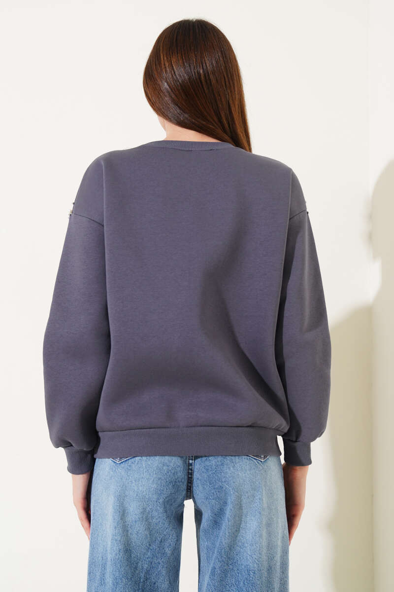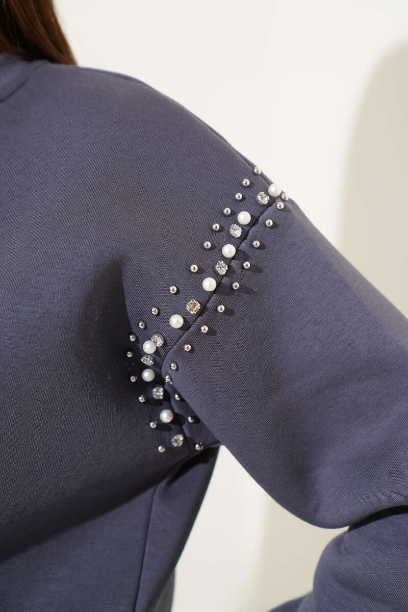 Taş Serpmeli Sırt Dekolteli Triko Kazak Siyah