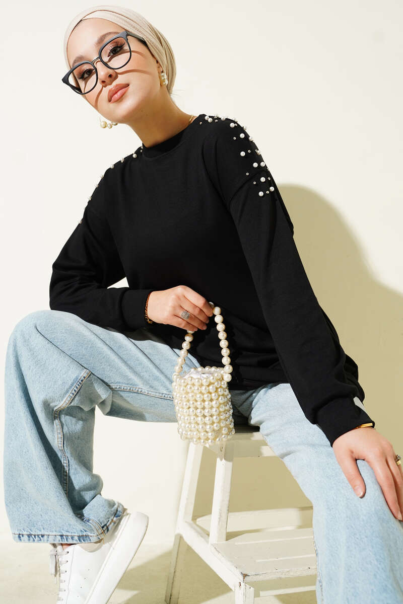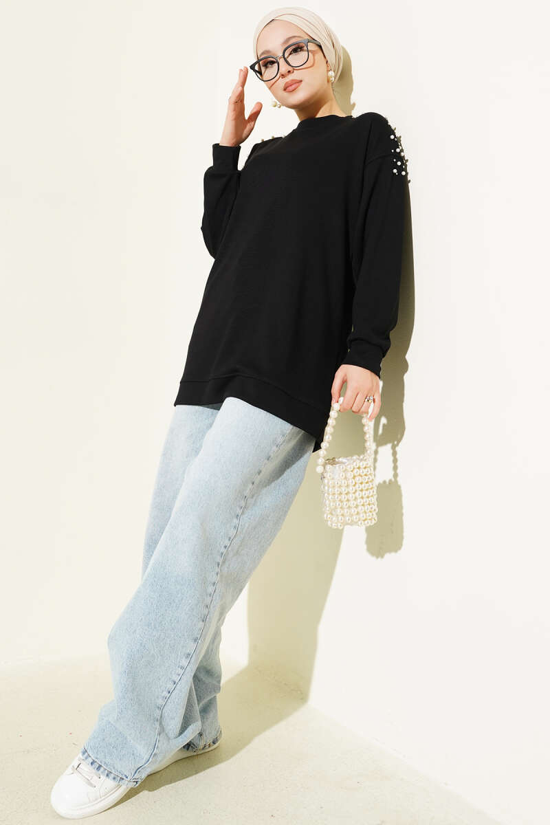 Loyşa Yuvarlak İncili Tunik Lacivert