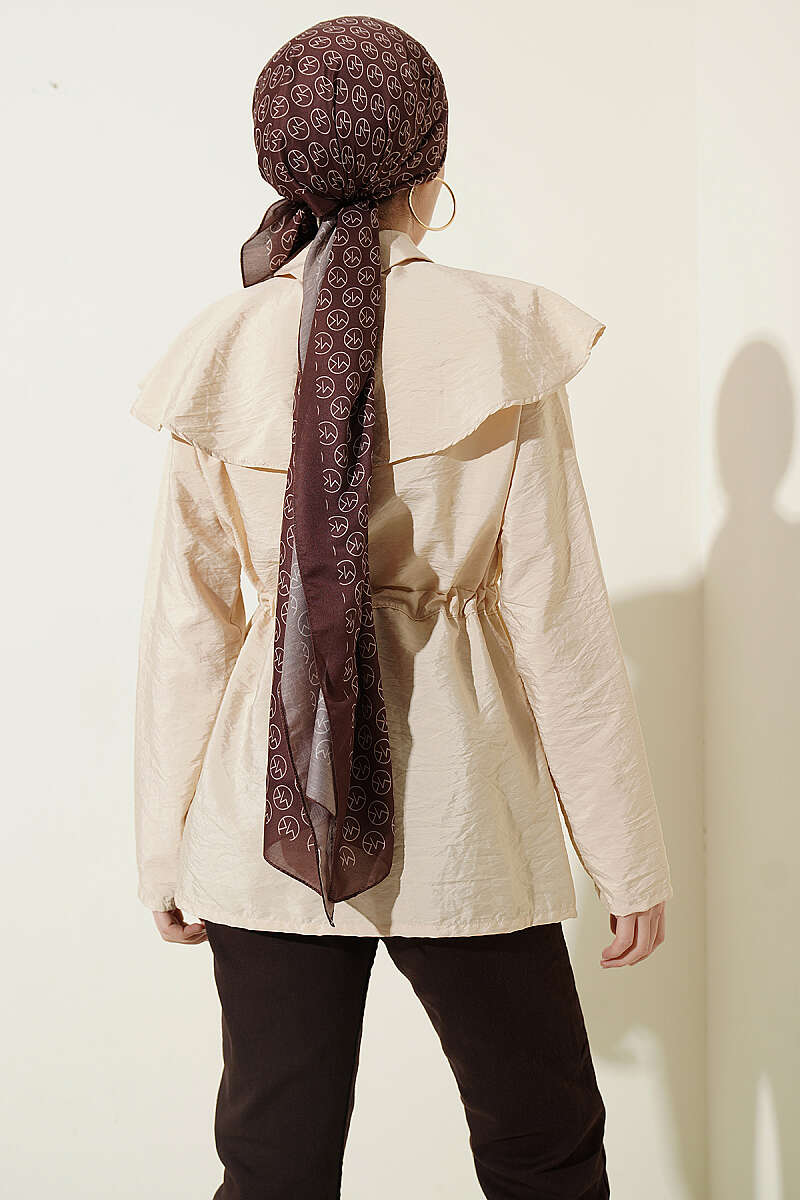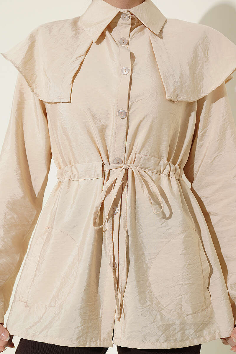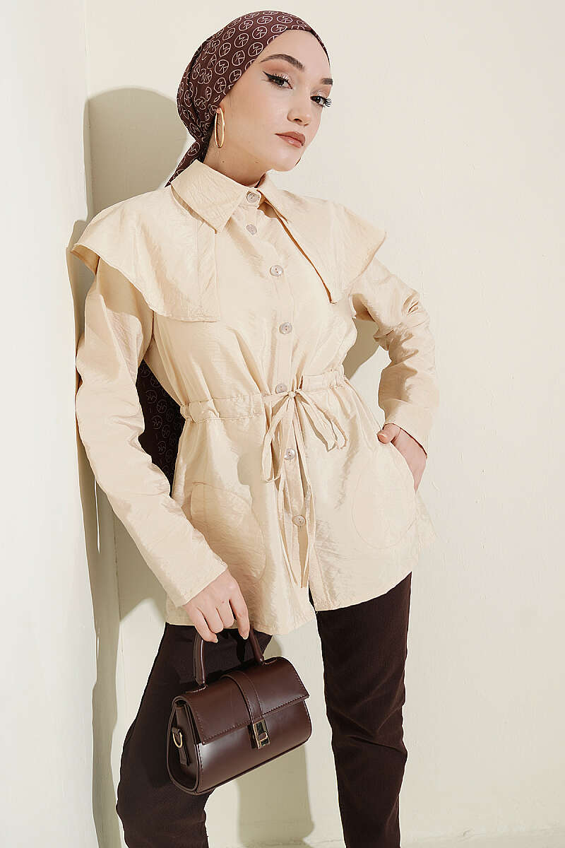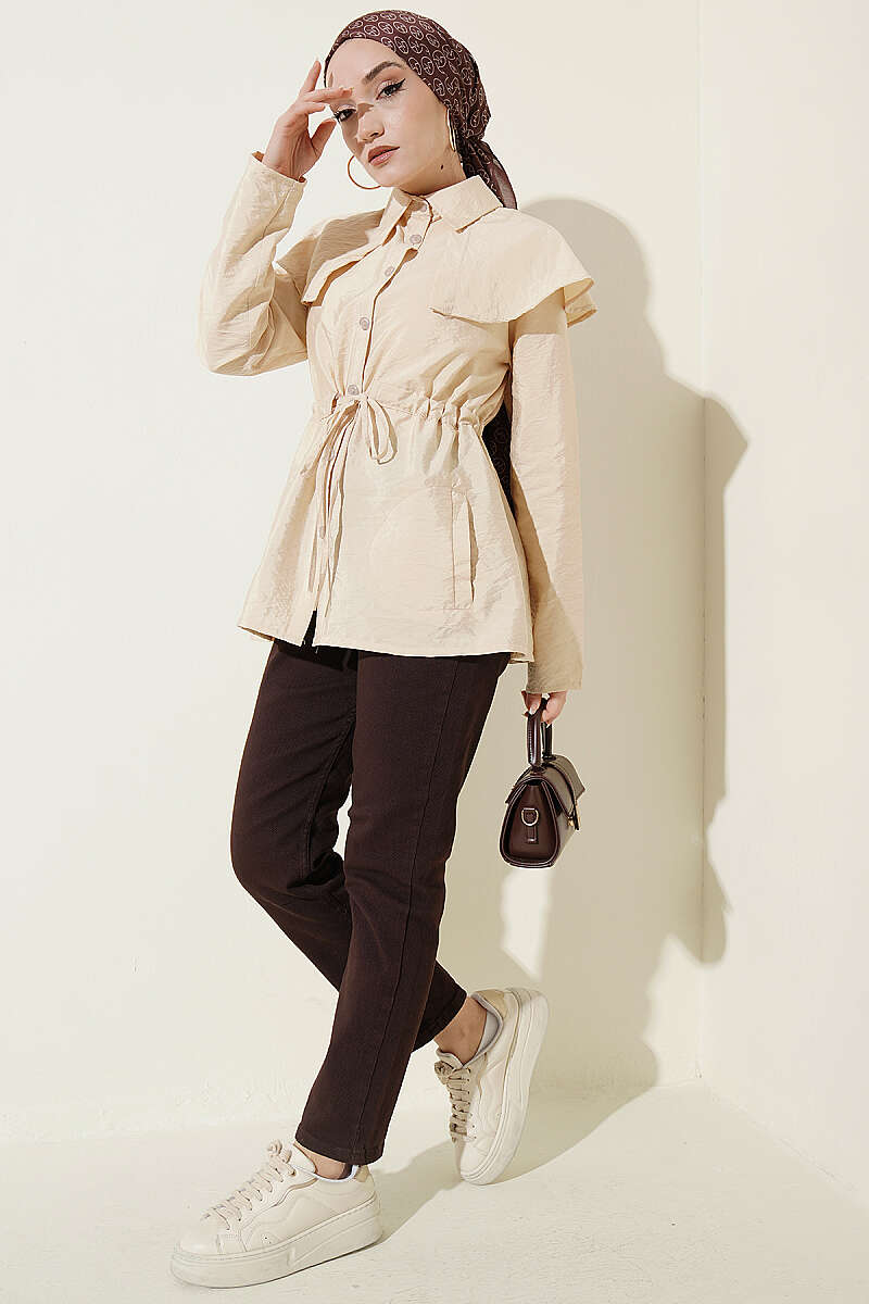 Omuz Parçalı Bel Tünelli Gömlek Bej