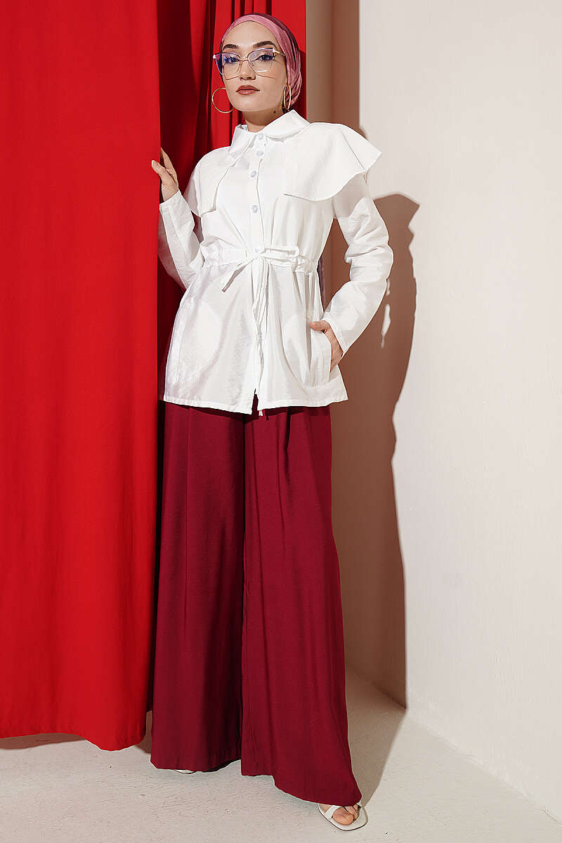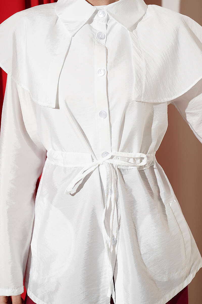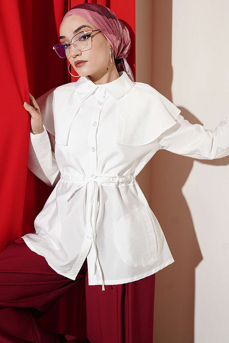 Omuz Parçalı Bel Tünelli Gömlek Beyaz