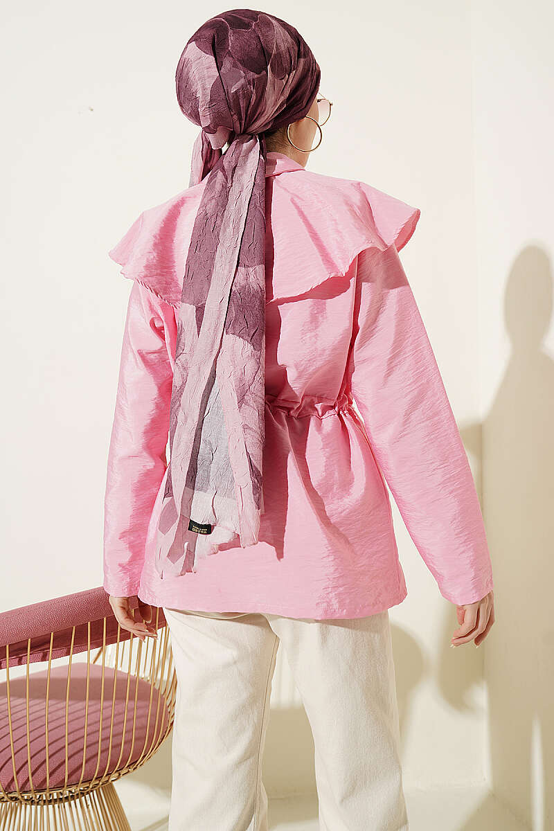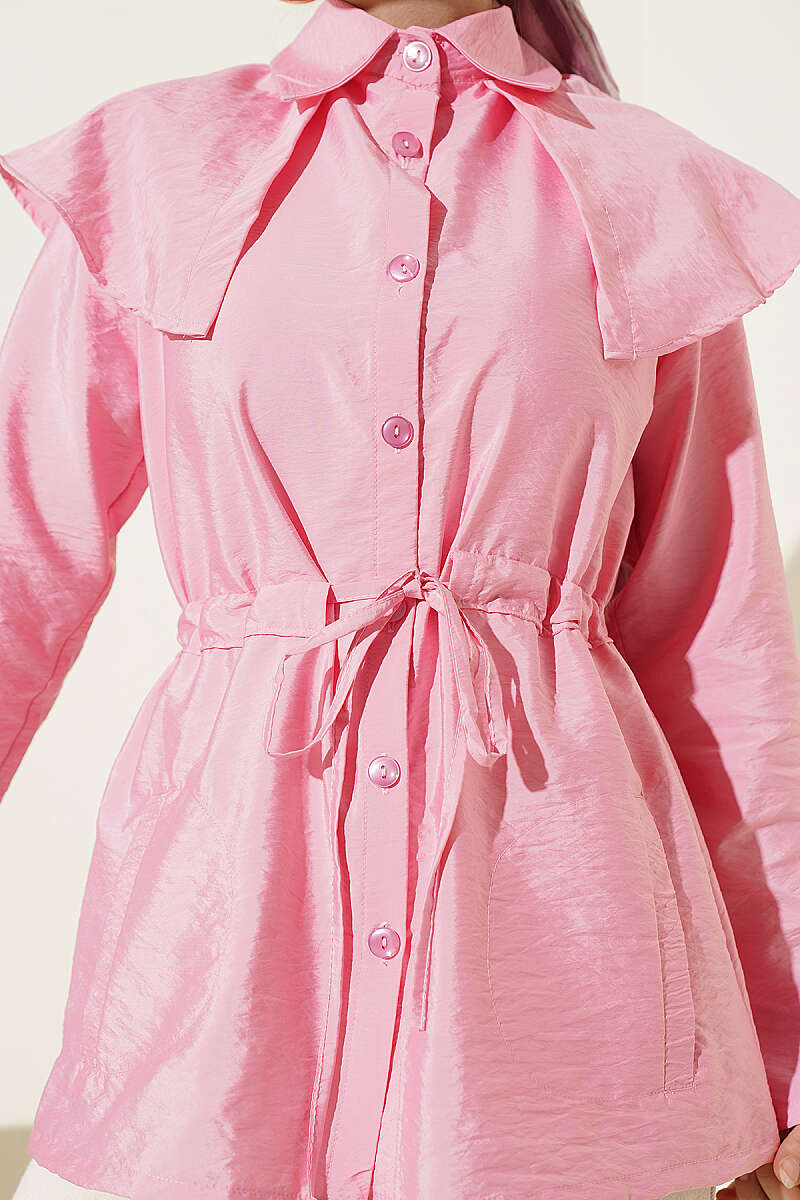 Omuz Parçalı Bel Tünelli Gömlek Pembe