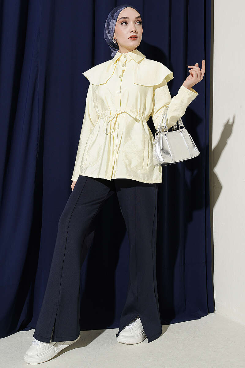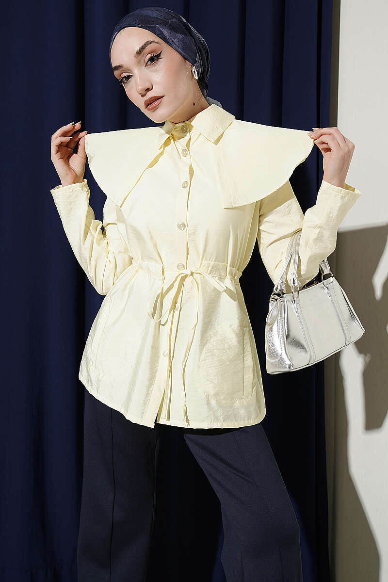 Omuz Parçalı Bel Tünelli Gömlek Sarı