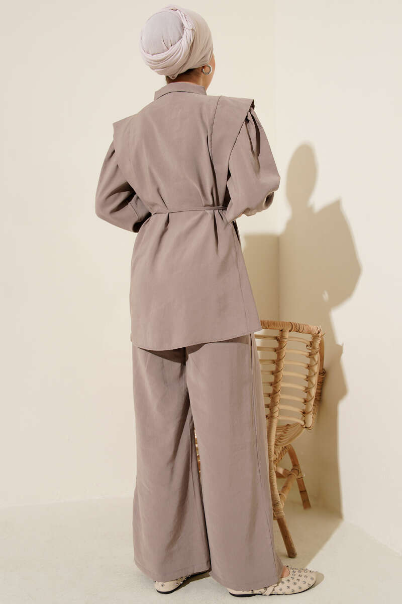 Omuz Parçalı İp Kuşaklı Tensel İkili Takım Vizon