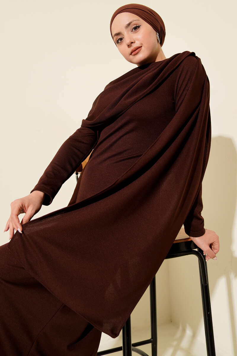 Omuz Pelerin Detaylı Abiye Elbise Kahve