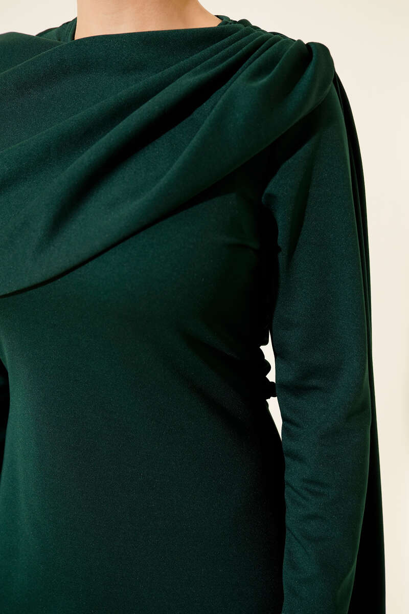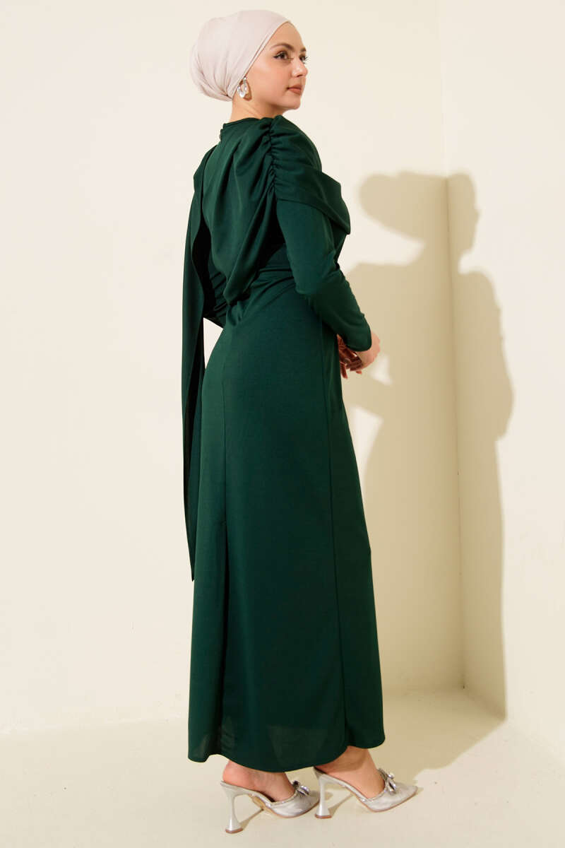 Pelerin Detaylı Pul Payet Abiye Elbise Haki