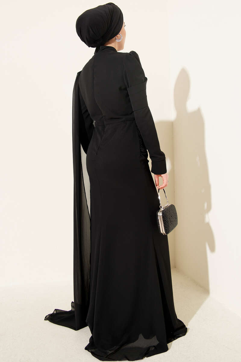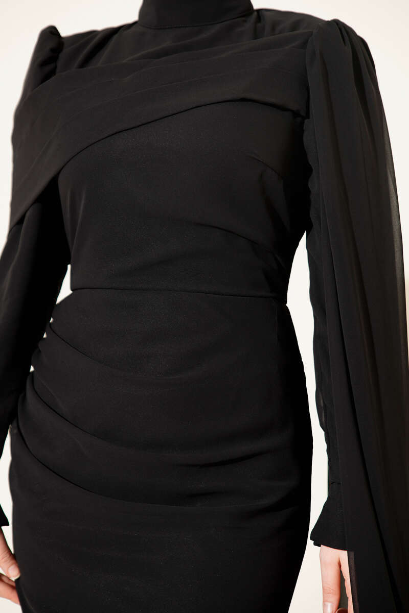 Boydan Düğmeli Kemerli Tensel Elbise Siyah