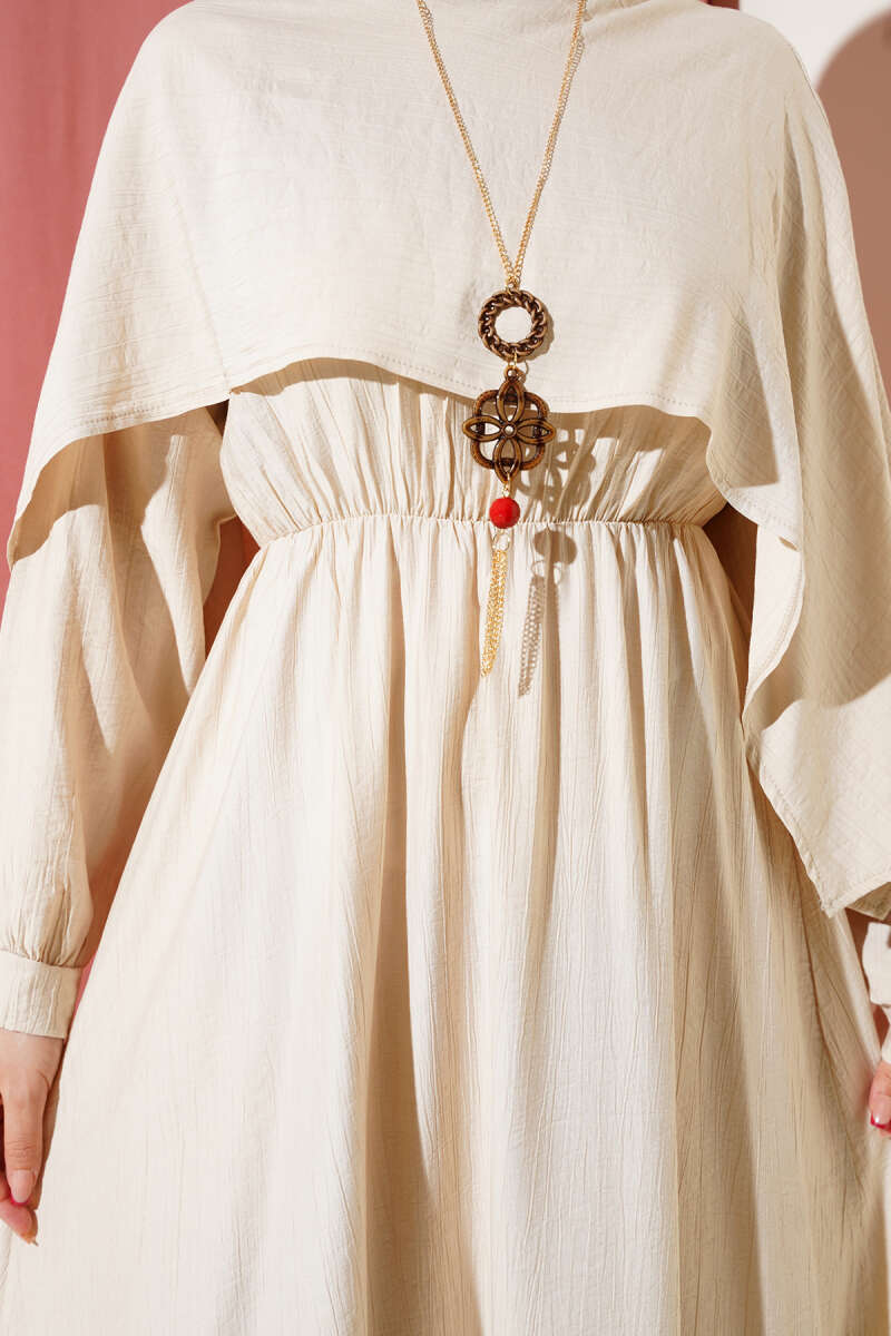 Balon Kol Kemerli Basic Elbise Bej