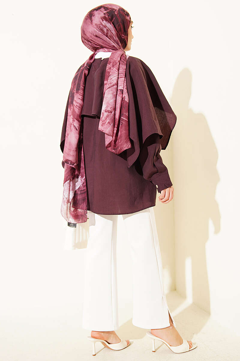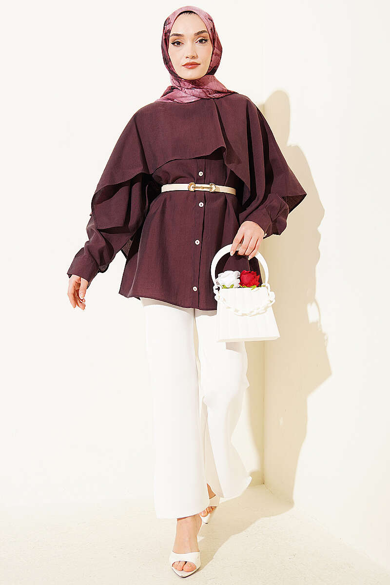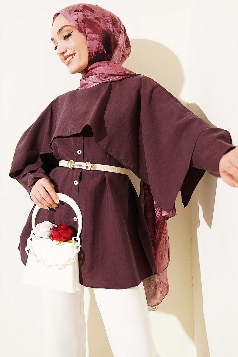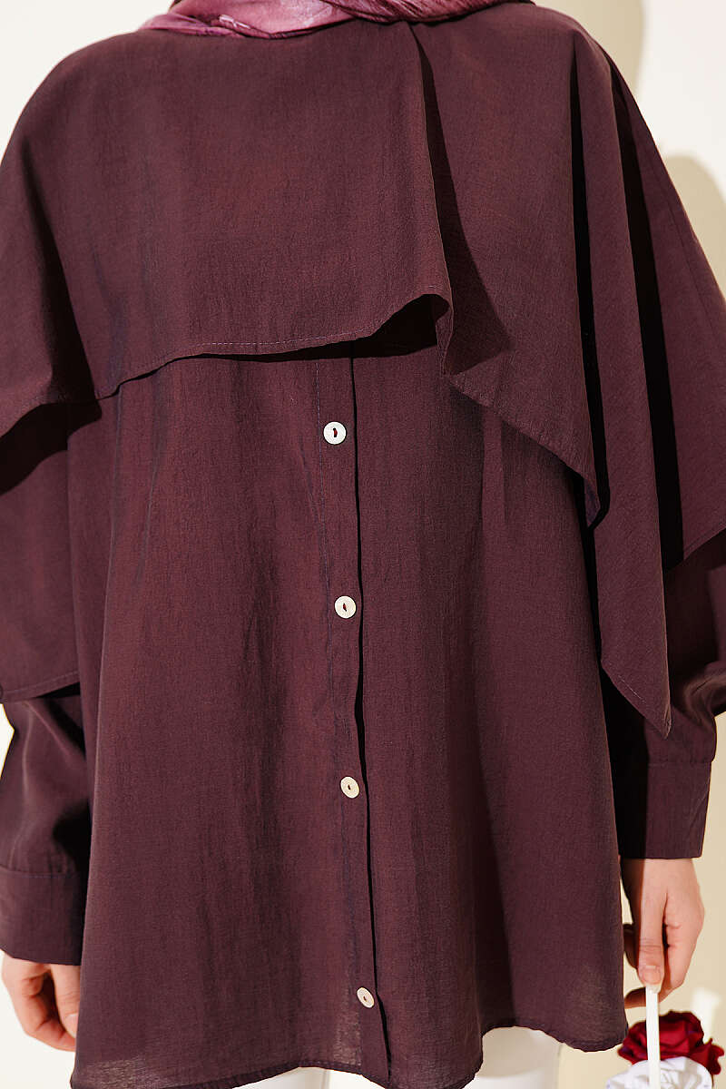 Omuz Pelerinli Düğme Detaylı Tunik Mürdüm