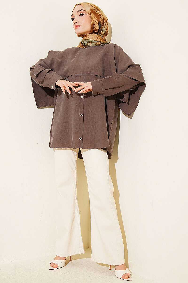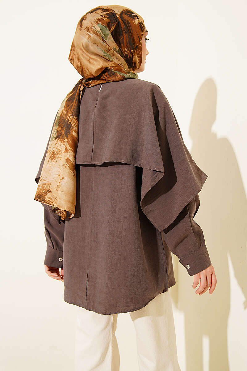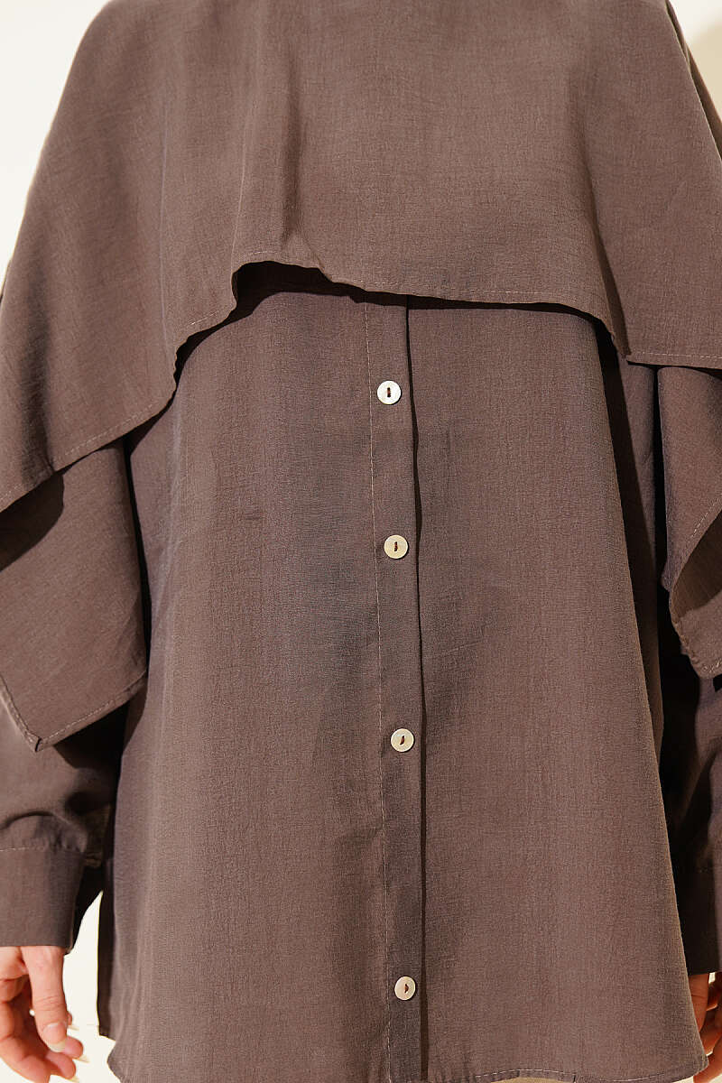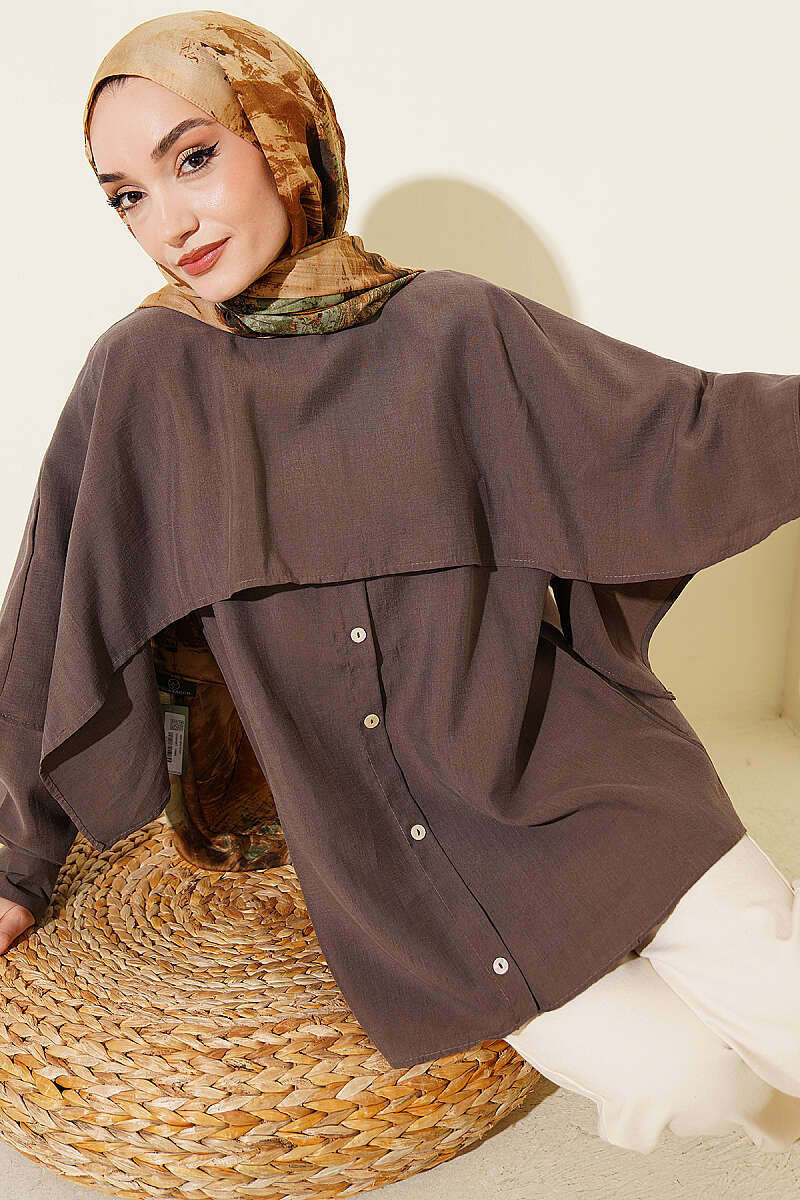 Omuz Pelerinli Düğme Detaylı Tunik Vizon