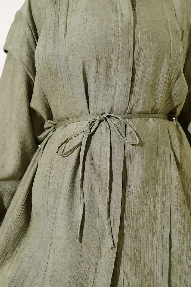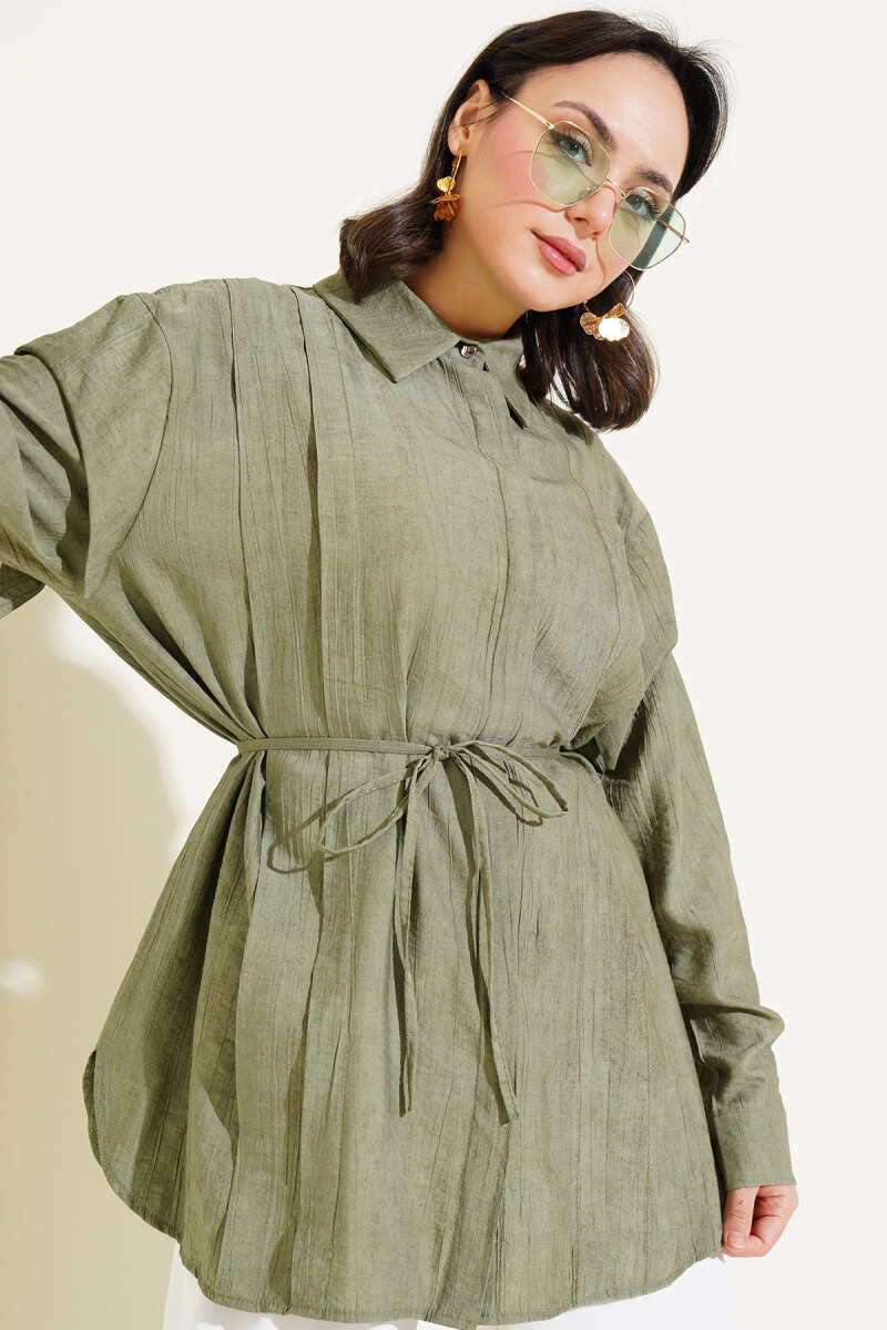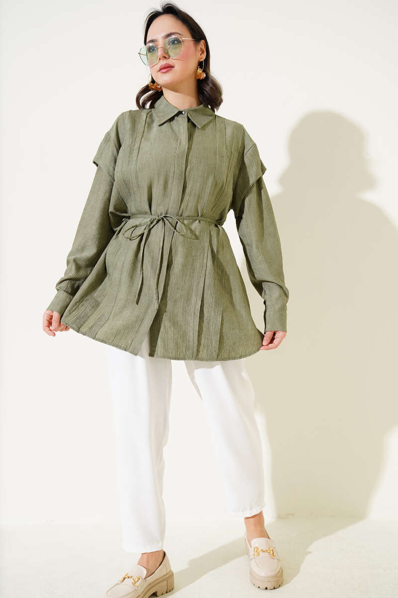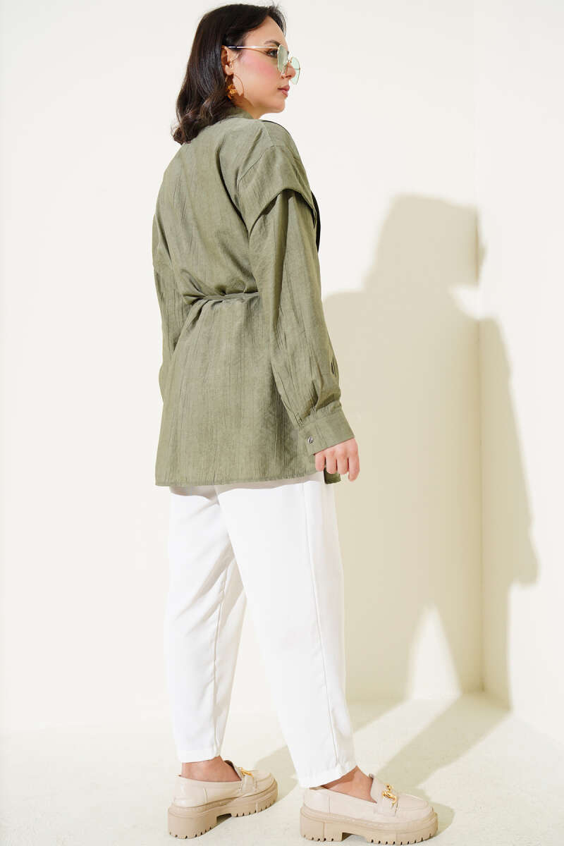 Omuz Pelerinli İp Bağcıklı Gömlek Haki