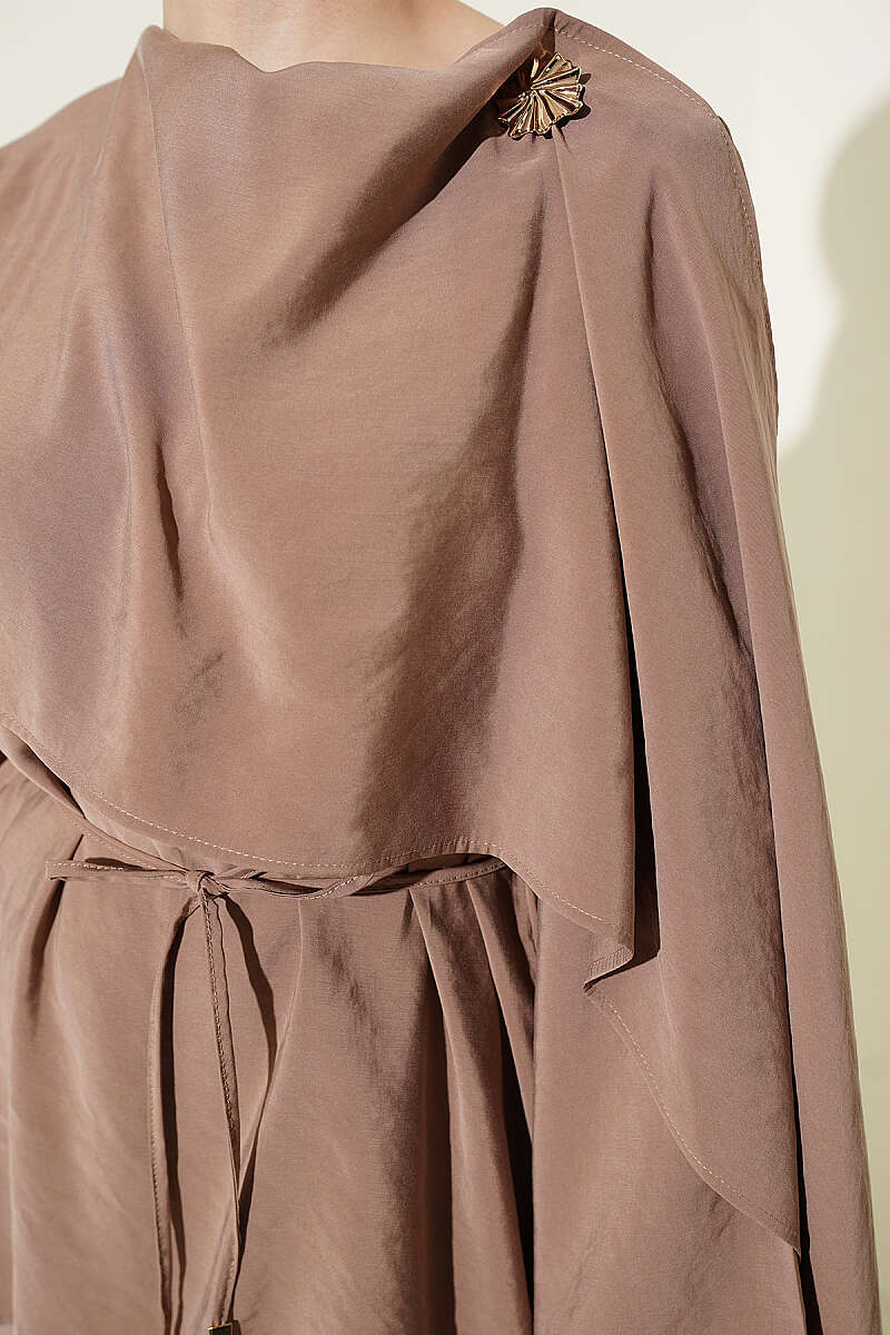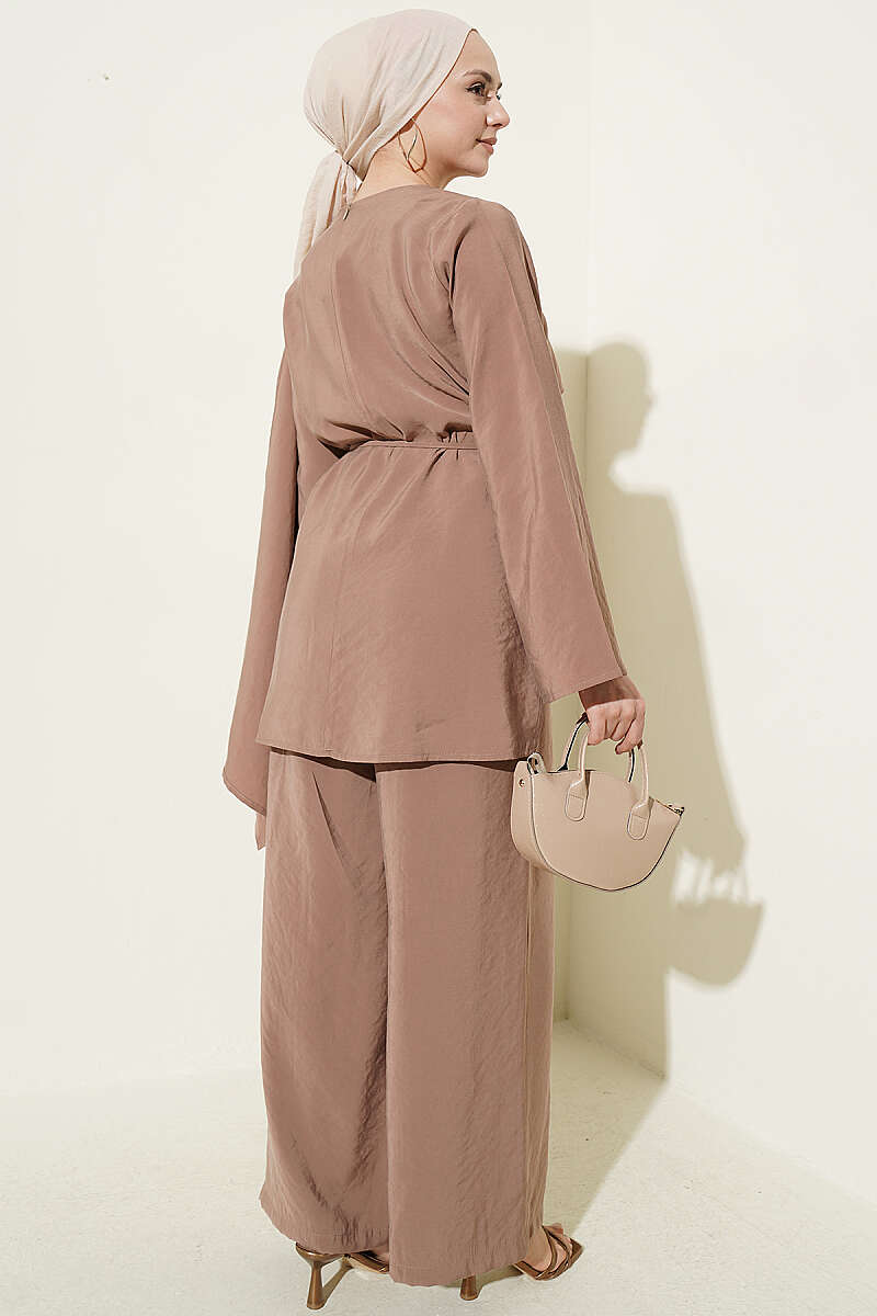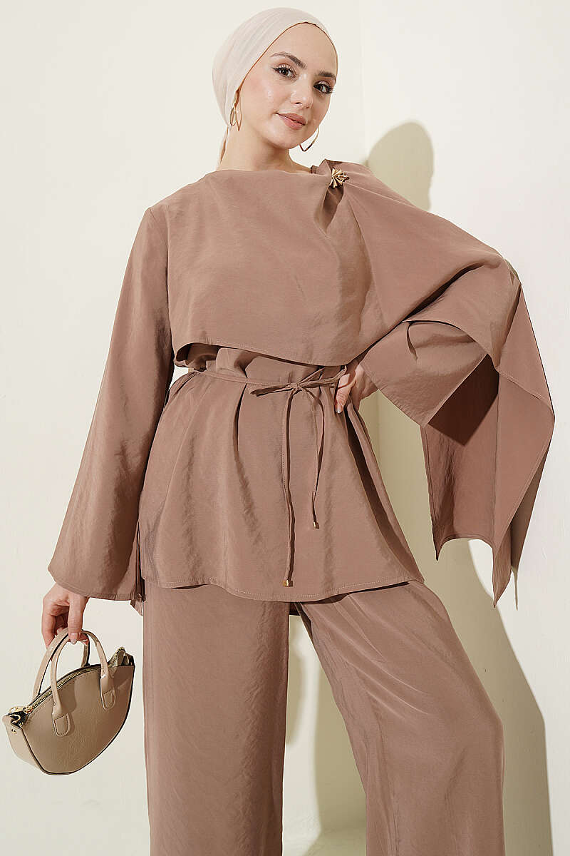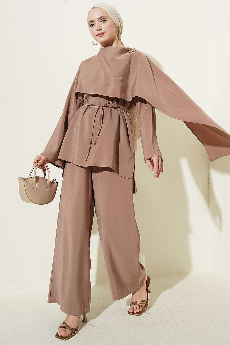Omuz Pelerinli Modal İkili Takım Latte