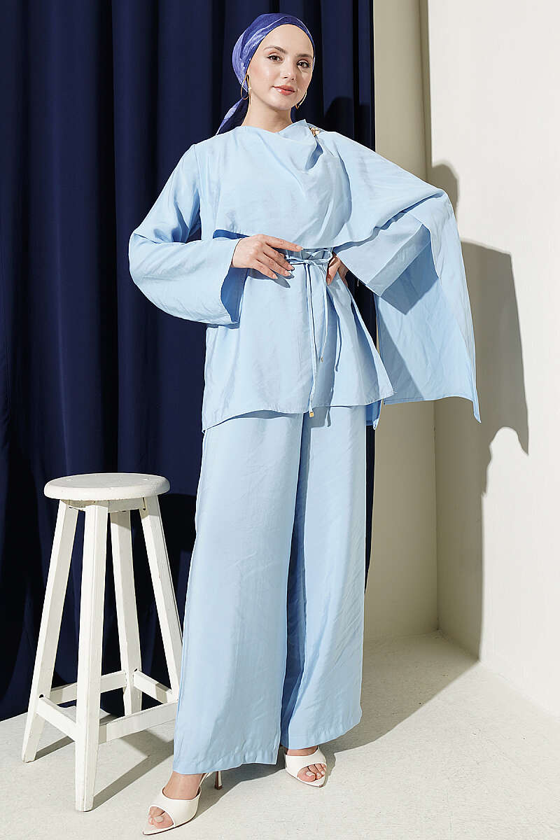 Omuz Pelerinli Modal İkili Takım Mürdüm