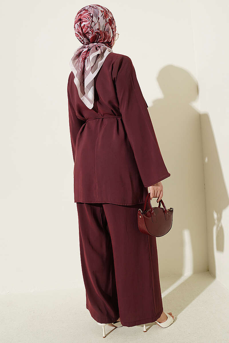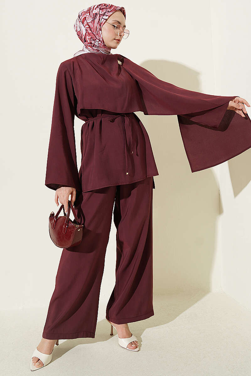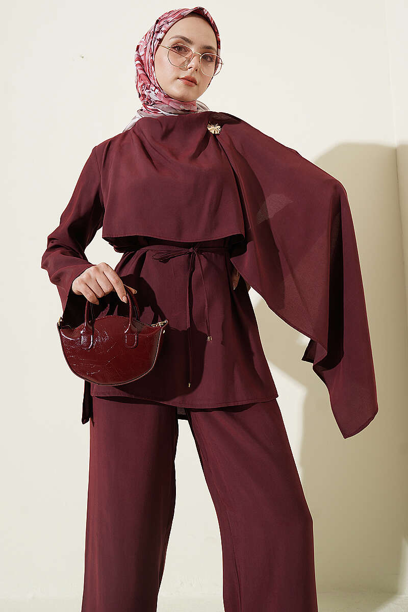 Omuz Pelerinli Modal İkili Takım Mürdüm