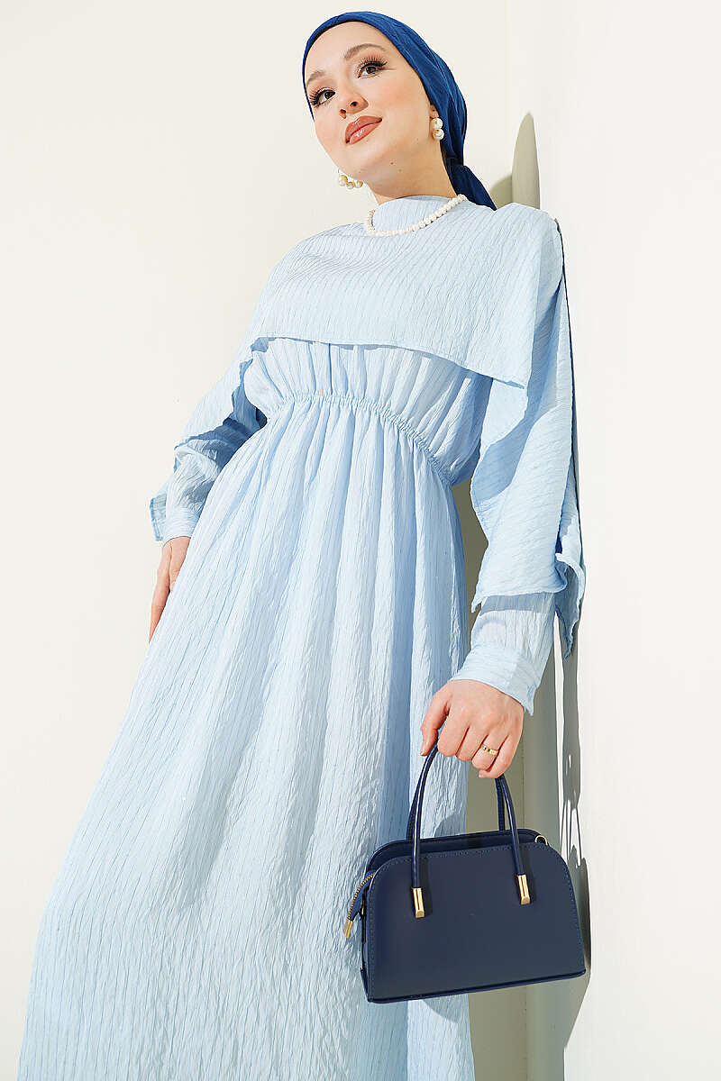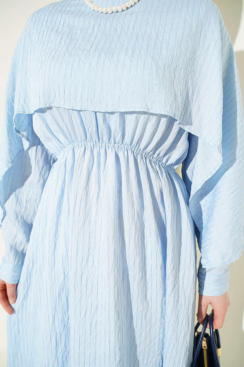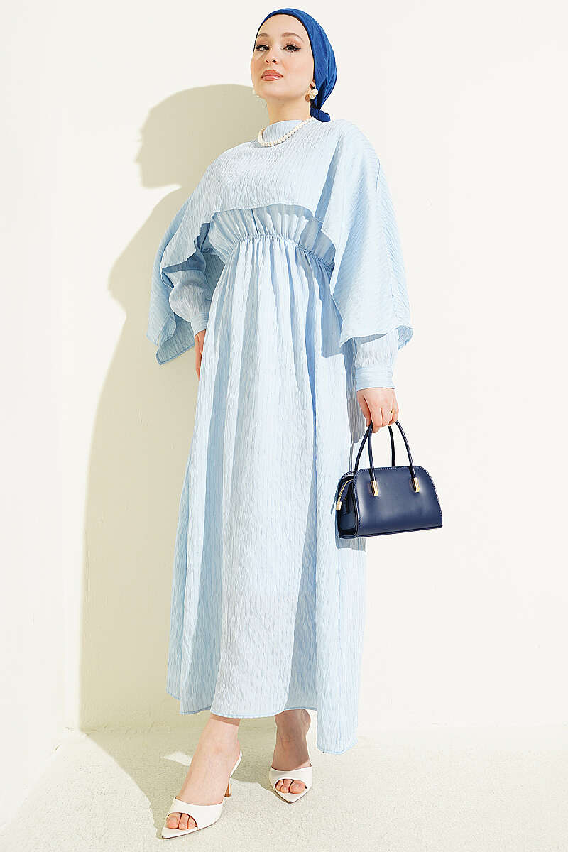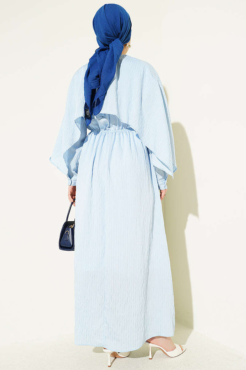 Omuz Pelerinli Pul Detaylı Elbise Bebe Mavi