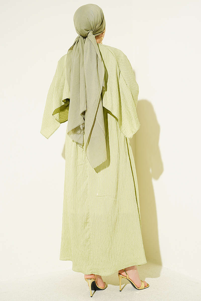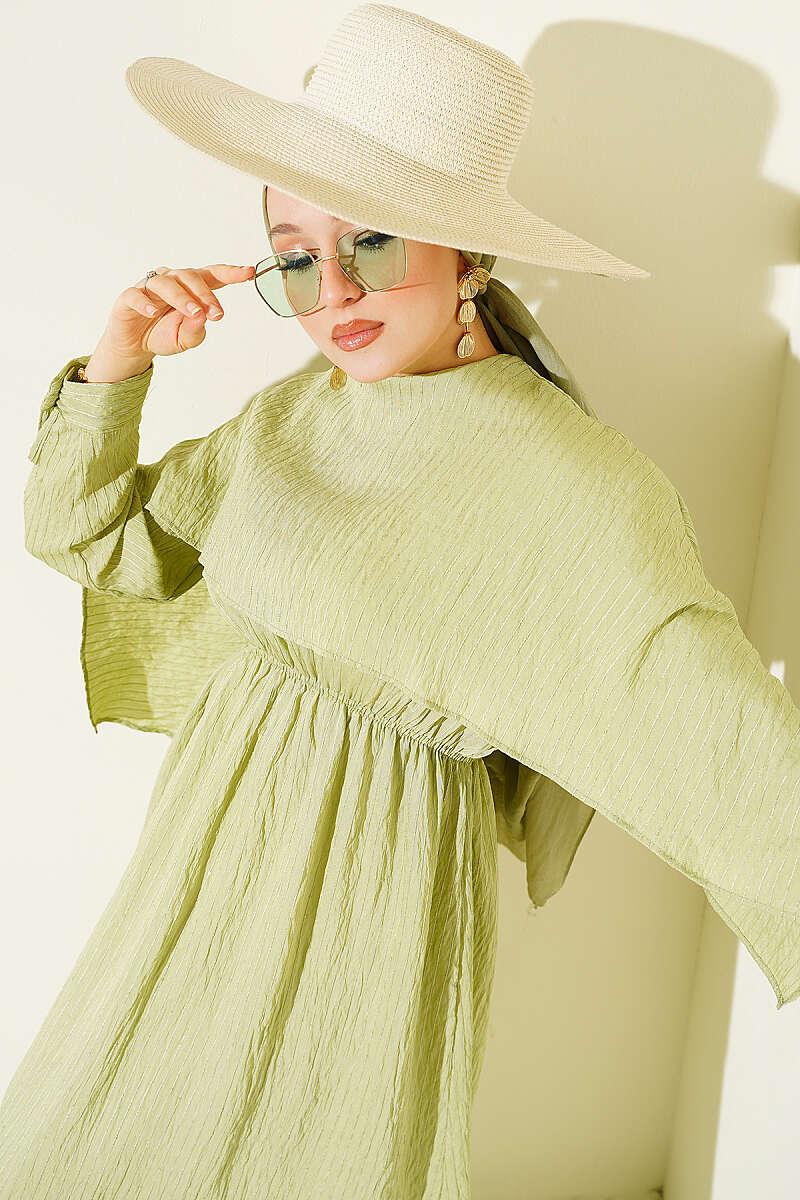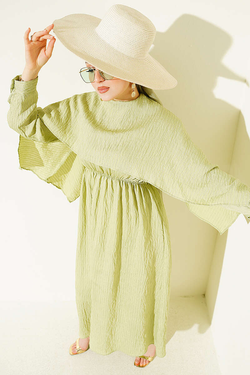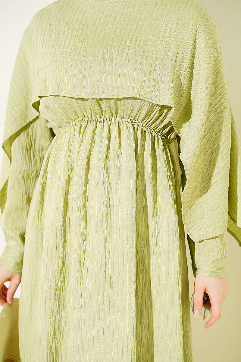 Omuz Pelerinli Pul Detaylı Elbise Çağla Yeşili