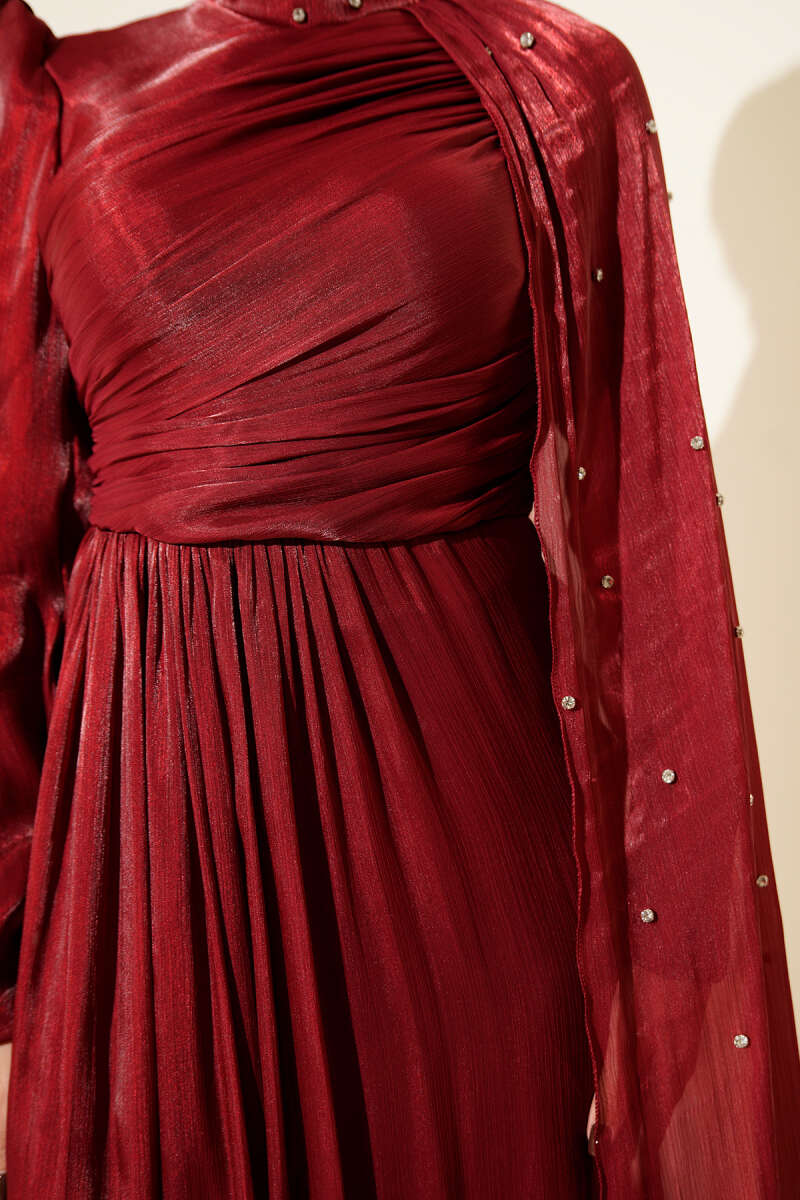 Fularlı İp Bağcık Detaylı Elbise Bordo