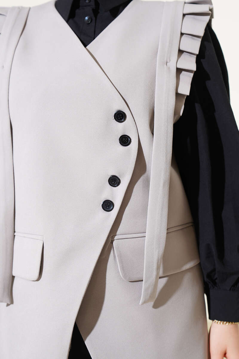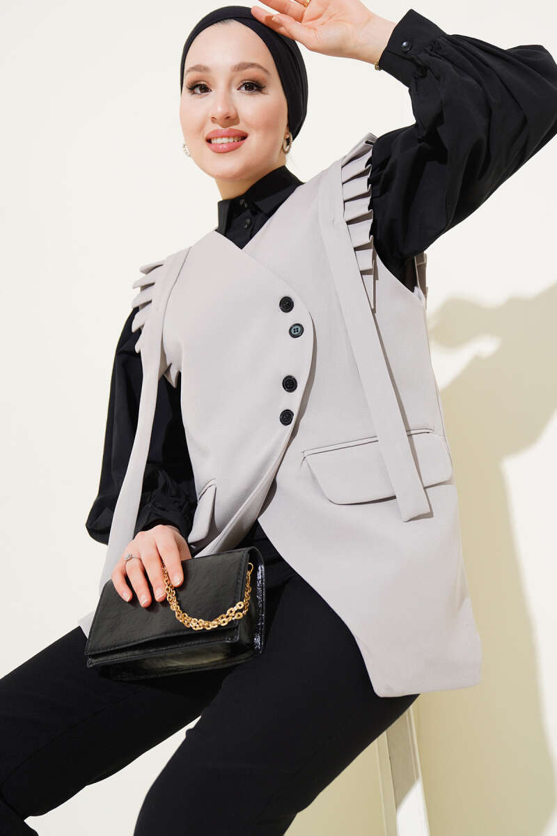 Omuz Pileli Cep Kapaklı Yelek Gri