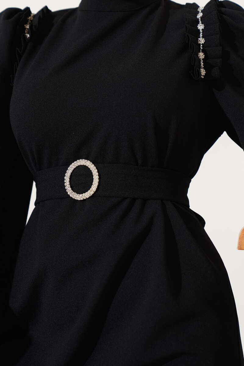 Pötikareli Yanları Büzgü Detay Siyah Tunik