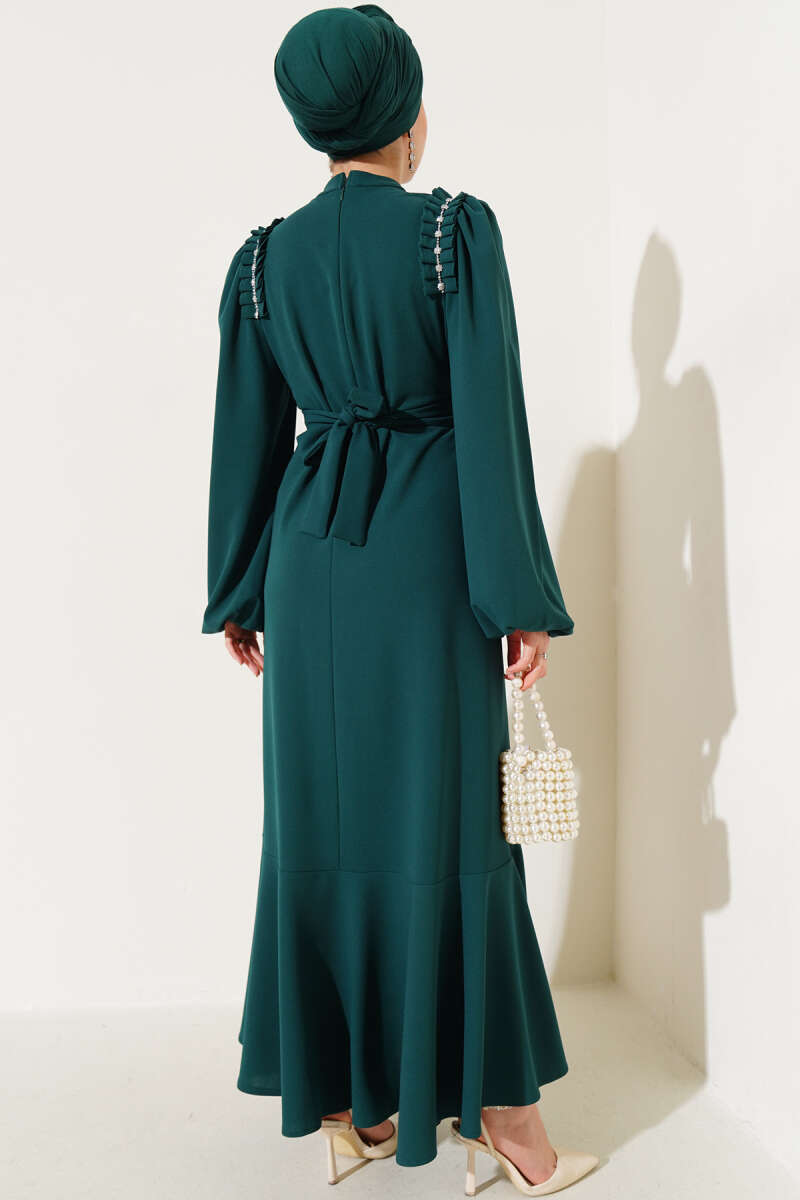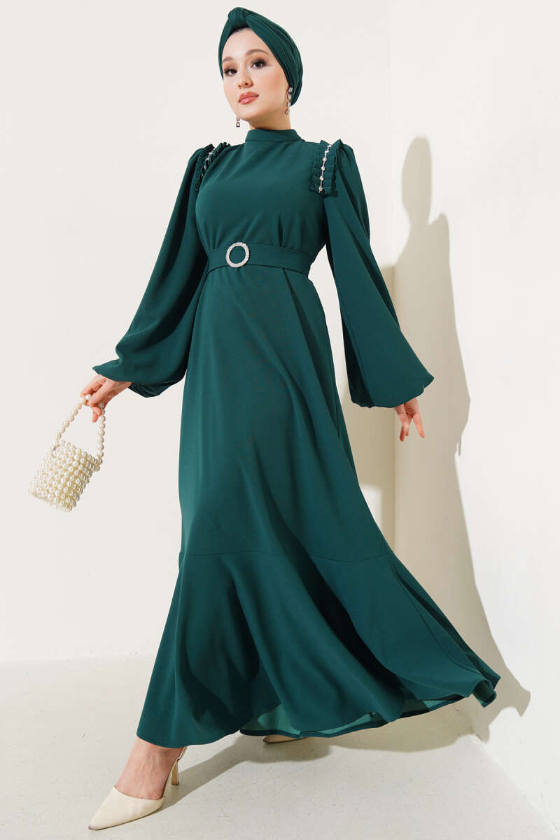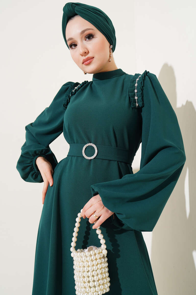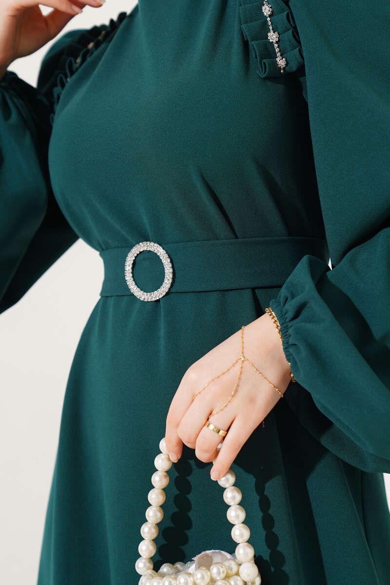 Kuşaklı Dik Fitilli Kaşe Elbise Haki