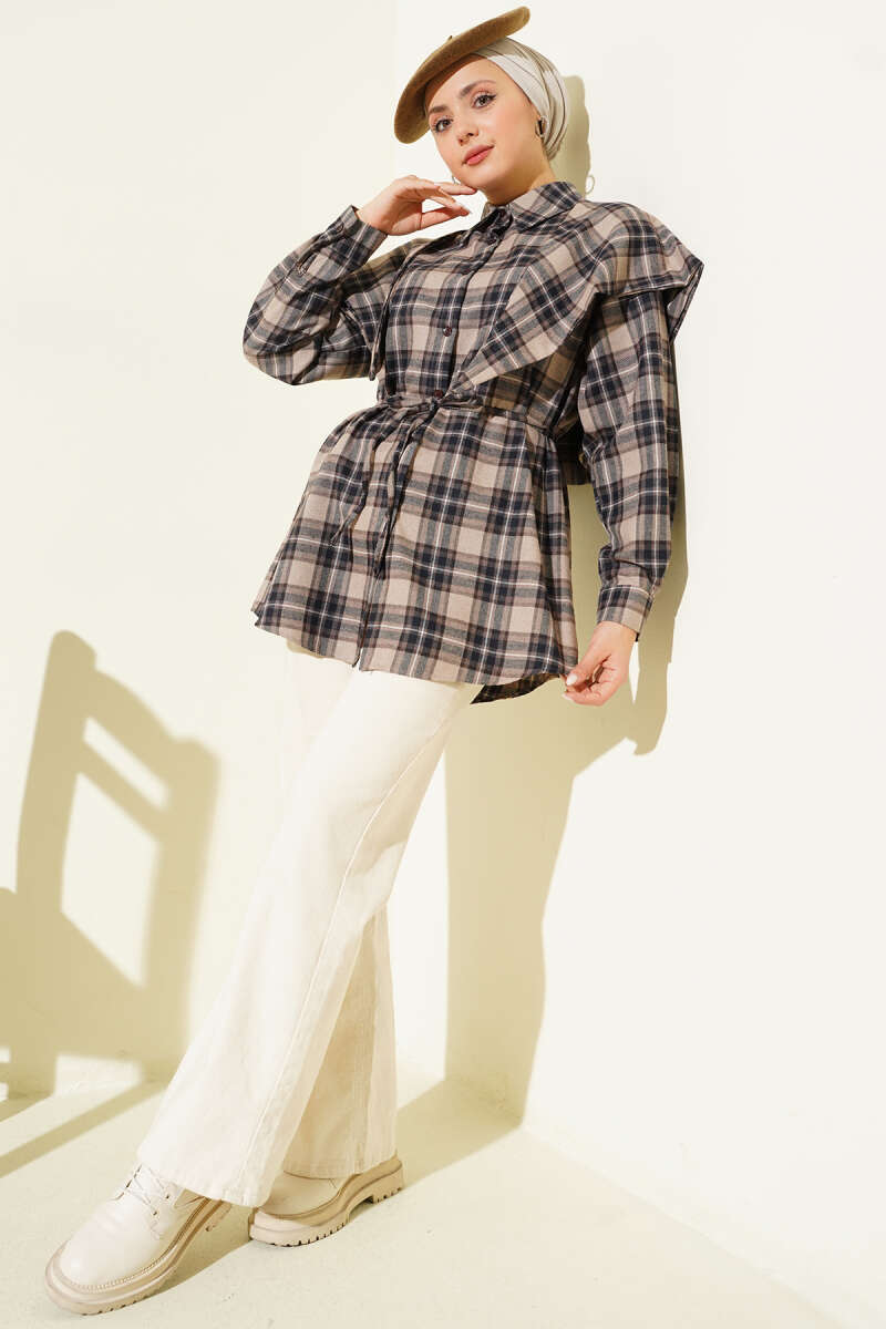 Omuz Şallı Ekoseli Gömlek Lacivert