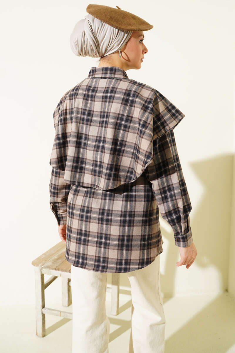 Çift Cepli Kapüşonlu Oduncu Gömlek Pudra