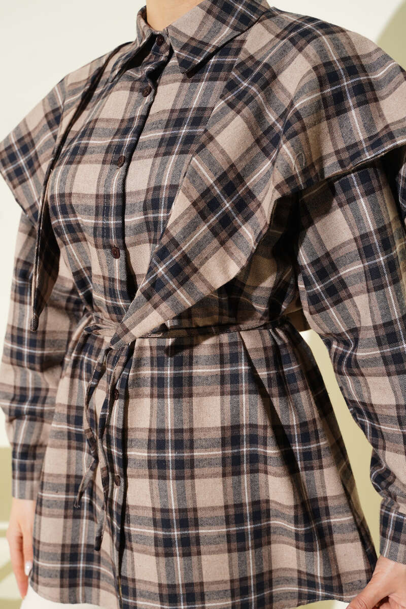Önü İp Bağlamalı Gömlek Vizon