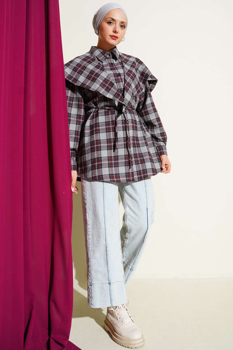Atkı Detaylı Ekoseli Gömlek Antrasit