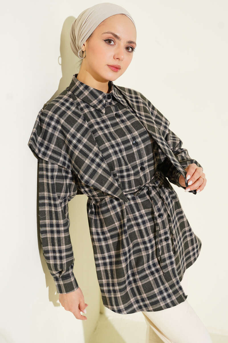 Omuz Şallı Ekoseli Gömlek Haki