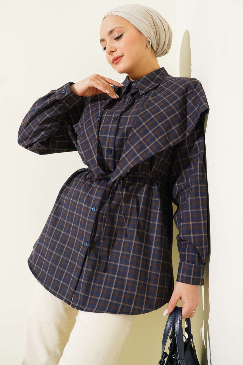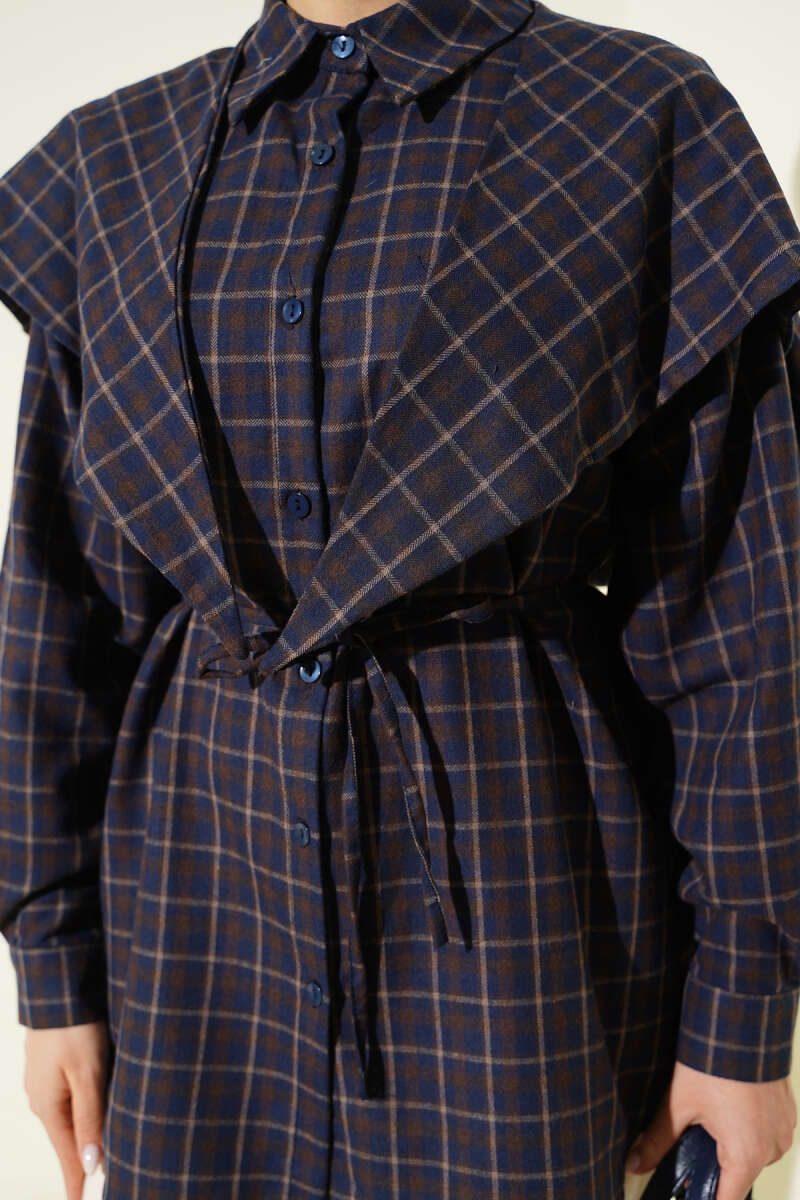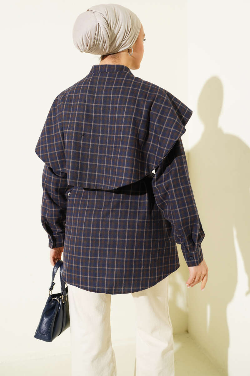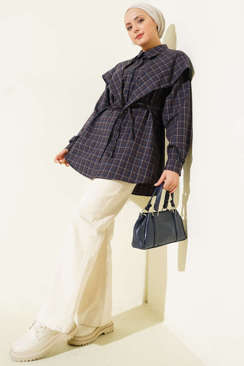 Omuz Şallı Ekoseli Gömlek Lacivert