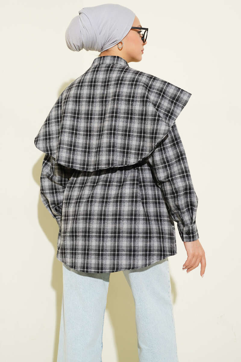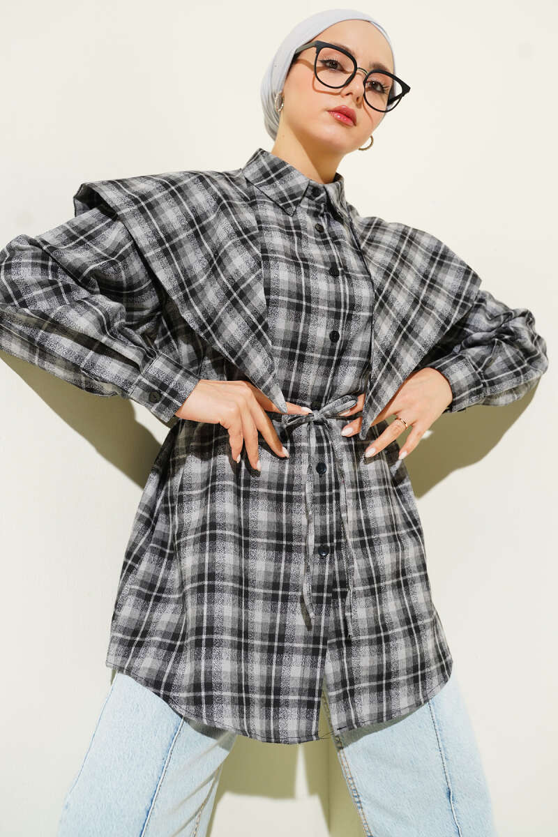 Atkı Detaylı Ekoseli Gömlek Antrasit