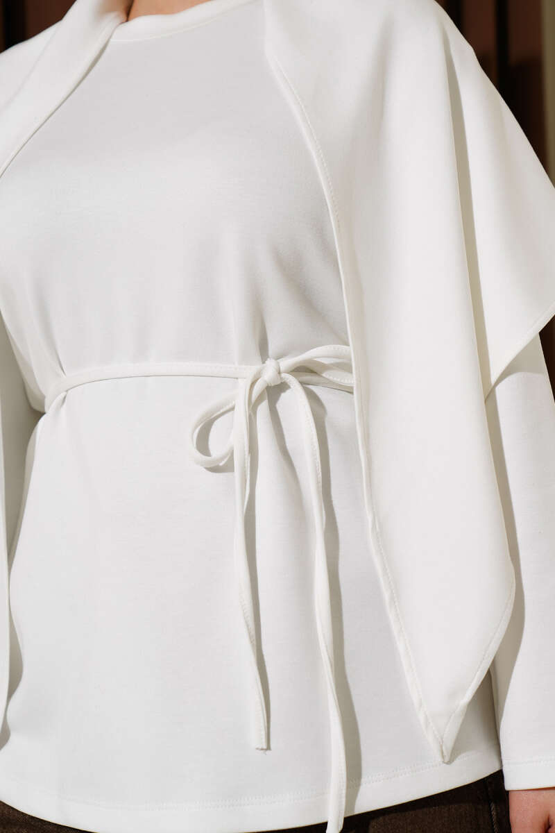 Gömlek Yaka Çizgili Triko Tunik Ekru