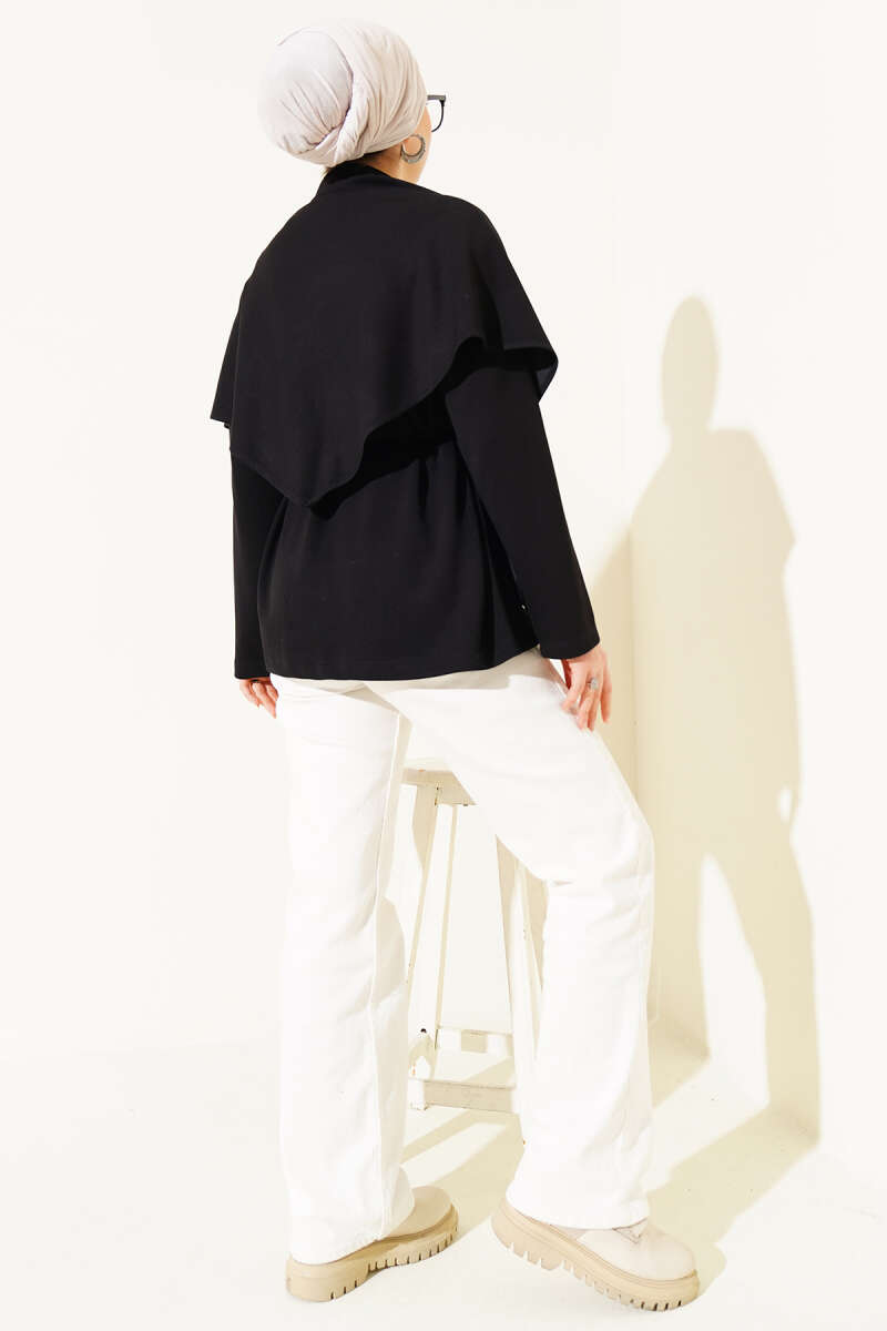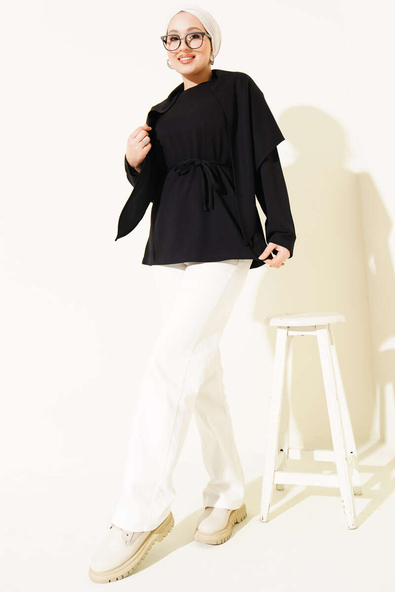 Saten Yaka Fularlı Triko Tunik Siyah