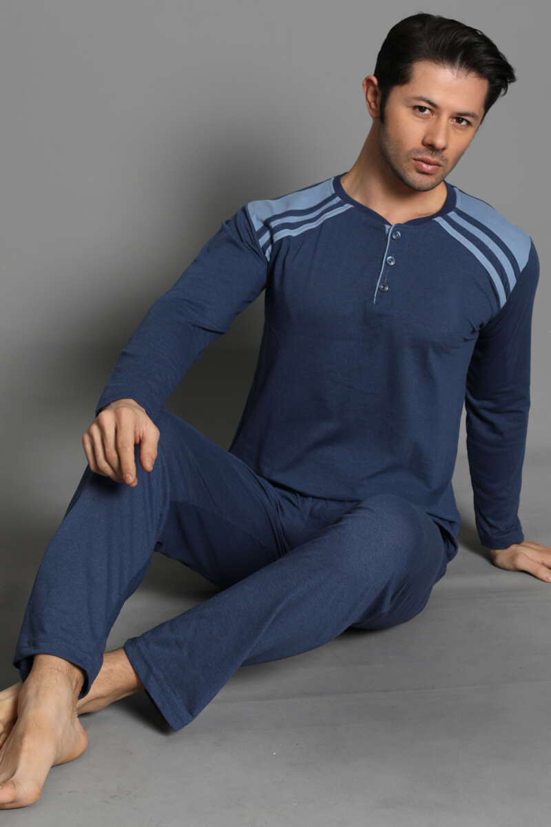 Omuz Şeritli Düğmeli Erkek Pijama Takımı İndigo