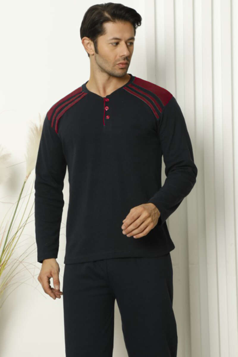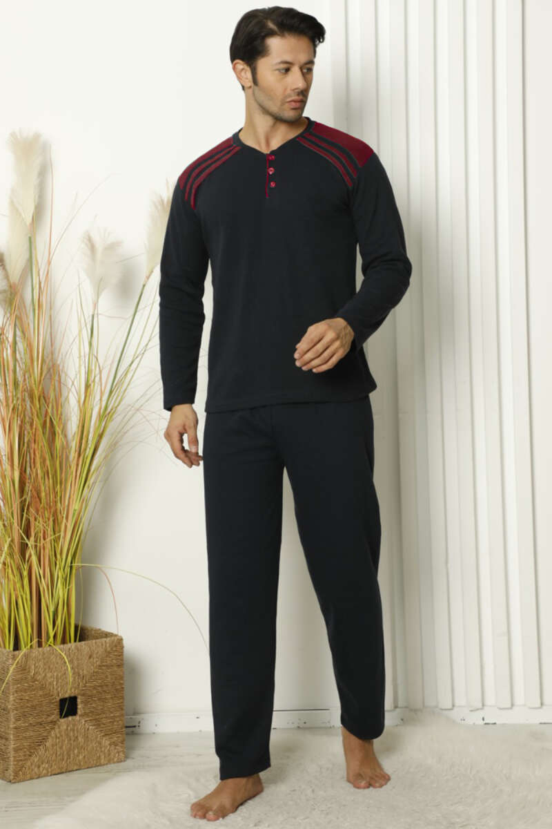 Omuz Şeritli Düğmeli Erkek Pijama Takımı Lacivert Bordo