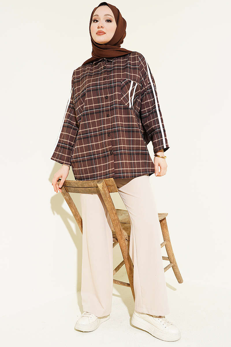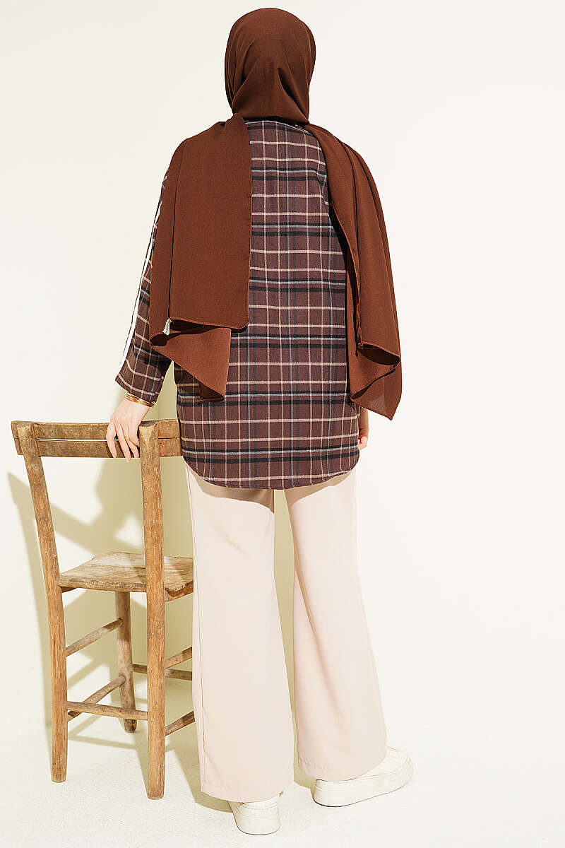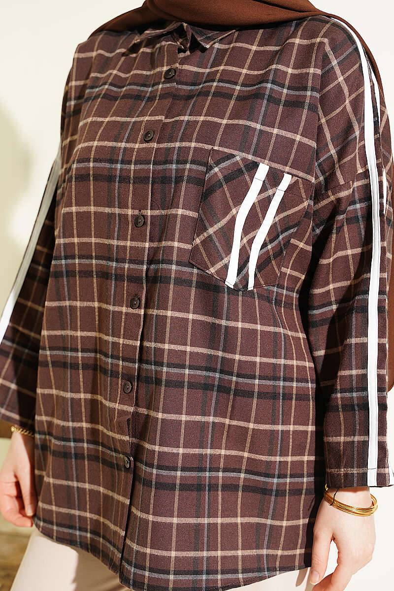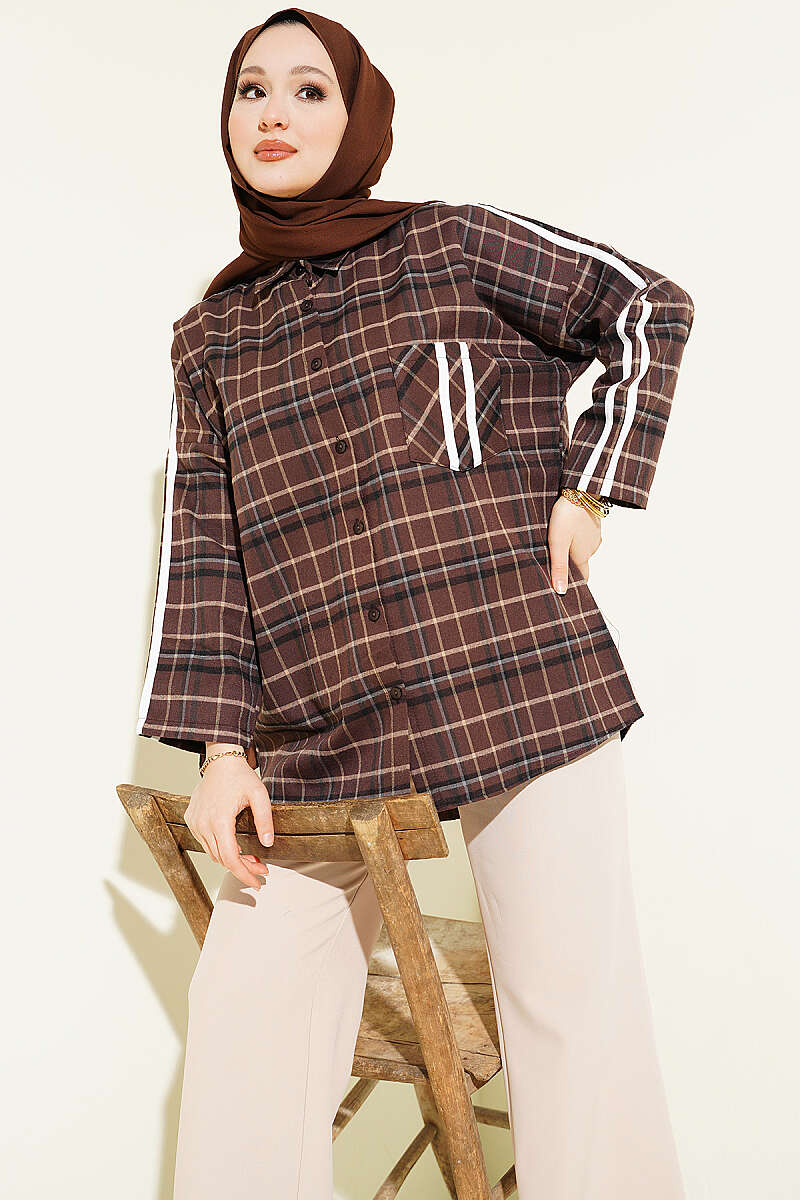 Omuz Şeritli Ekoseli Gömlek Kahve