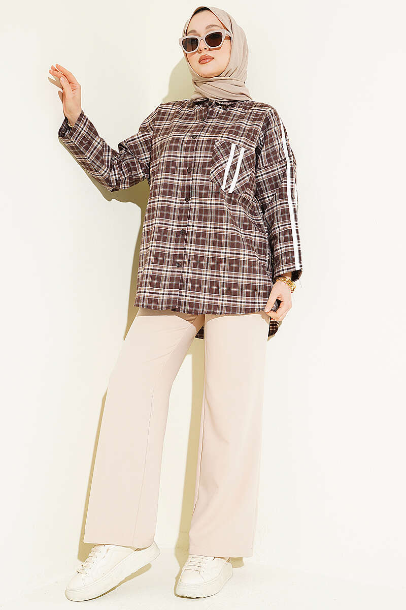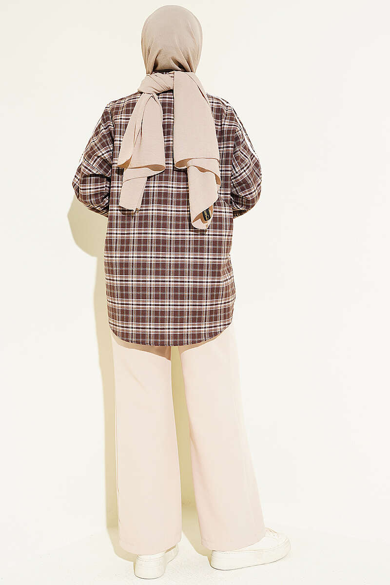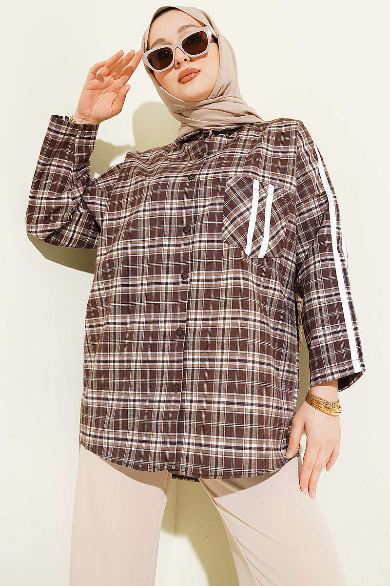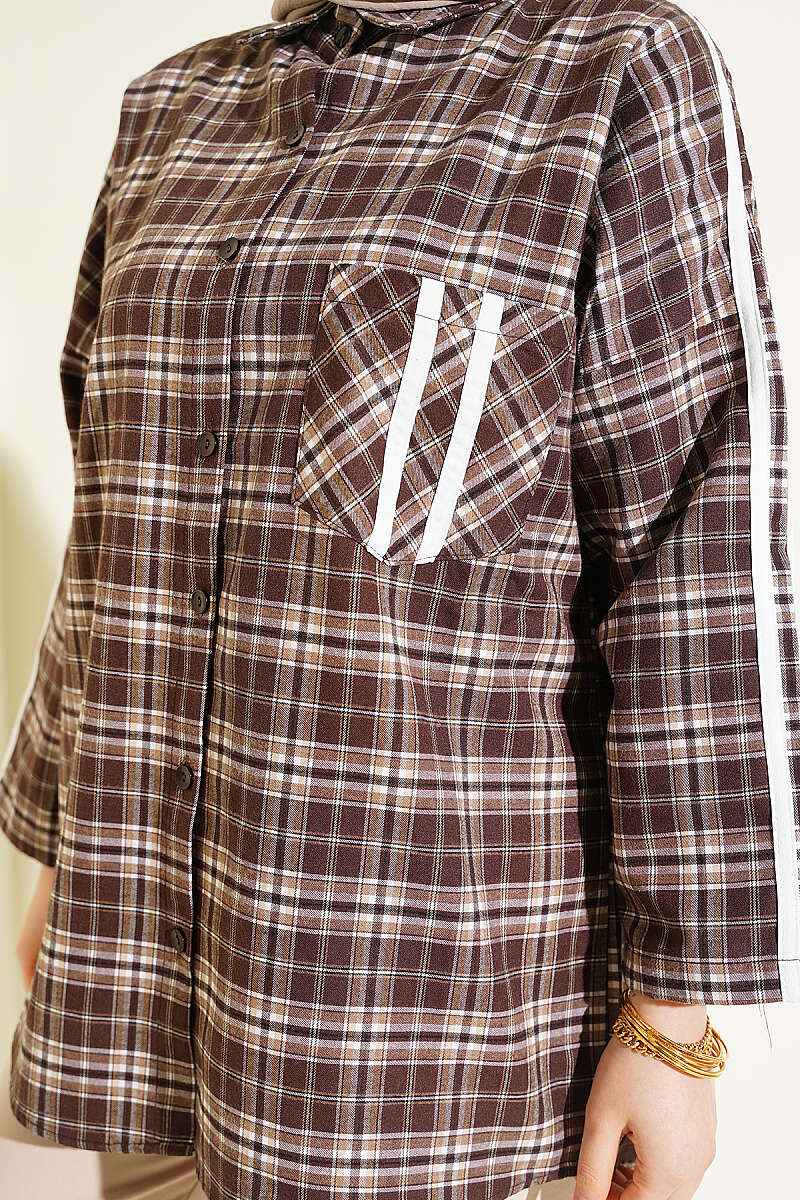 Omuz Şeritli Ekoseli Gömlek Kahve